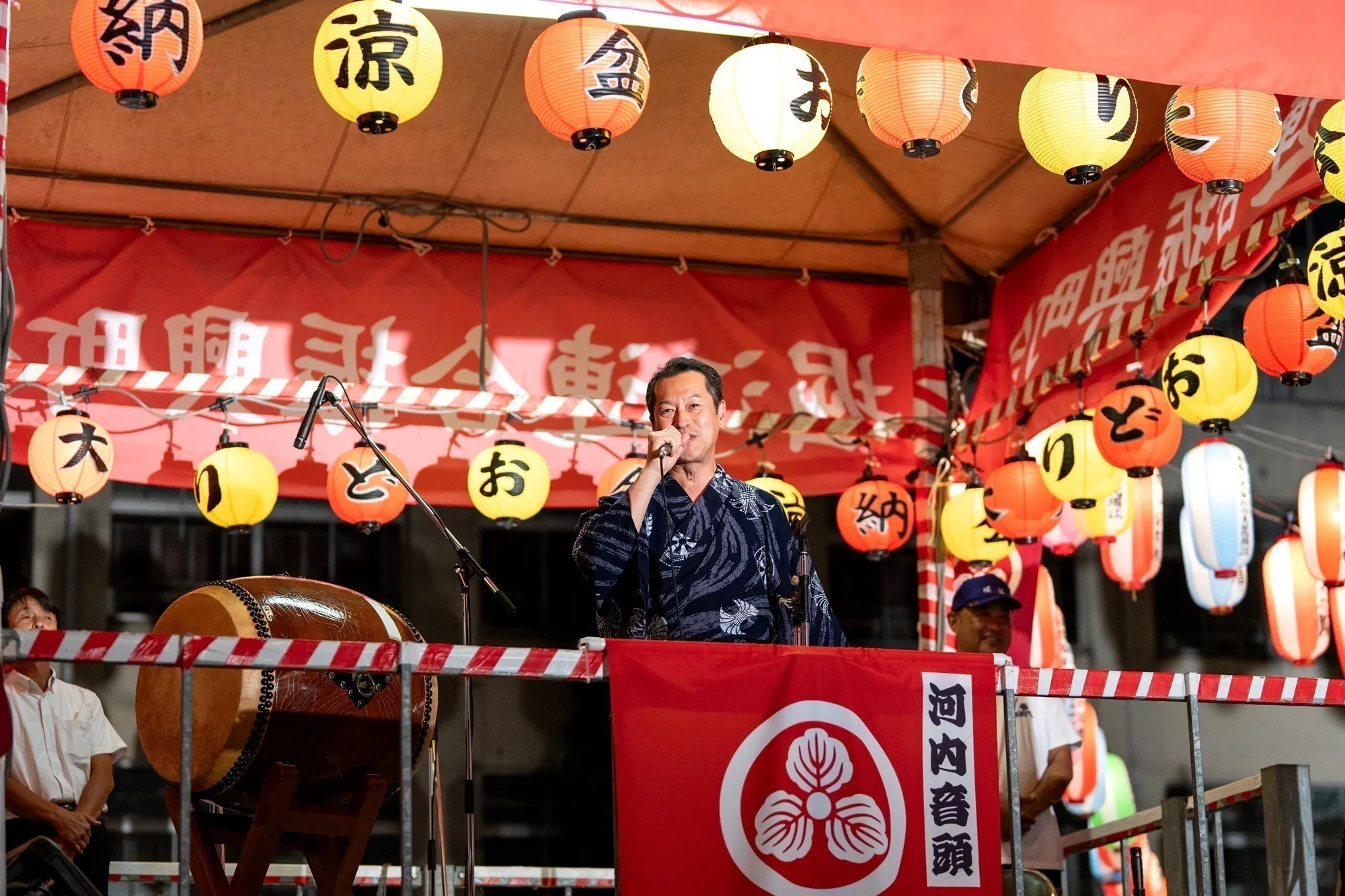 ※5 ご支援者お一人あたり8月12日の19時~20時の間の8分ほどの枠で、こちらから指定する楽曲(堀江盆唄、炭坑節、河内男節、河内音頭、江州音頭、ダンシングヒーロー、この星の続きに)の中から選曲いただき櫓の上で歌唱頂けます。別途スタッフと事前に打ち合わせをさせて頂きます。