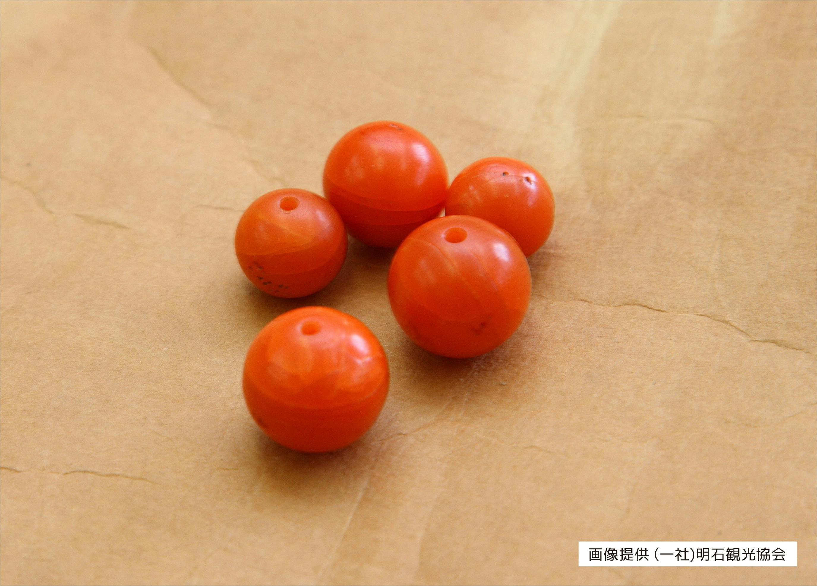 明石観光協会その昔、江戸時代末期に高価なサンゴの代わりになる「明石玉」という模造サンゴの玉かんざしが人気を博しており、それは明治・大正時代には中国へ輸出するほどの明石の特産品となっていました。この明石玉を作るのに卵の白身を使用したのですが、その際に黄身が余ってしまいます。この廃棄される運命の黄身と明石名産の蛸を具材に生まれたのが明石焼(あかし玉子焼とも言います)なのです。ですから、昭和初期にラジヲ焼きとして大阪で生まれた「たこ焼き」とはルーツが違うのです。