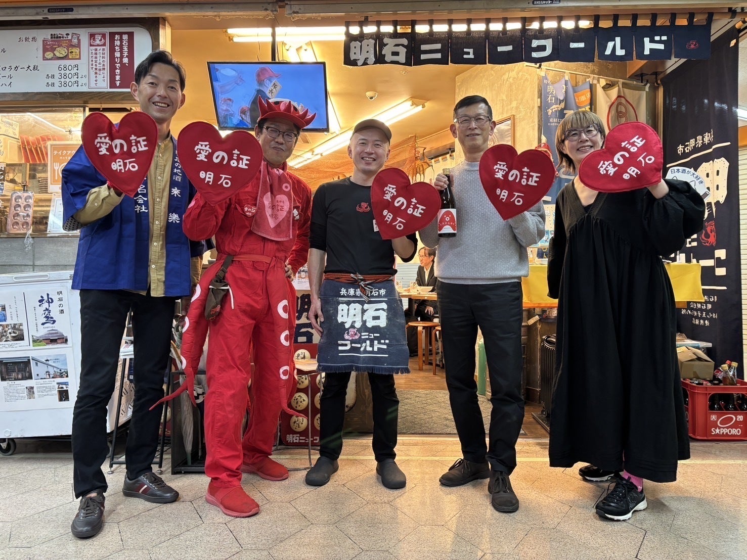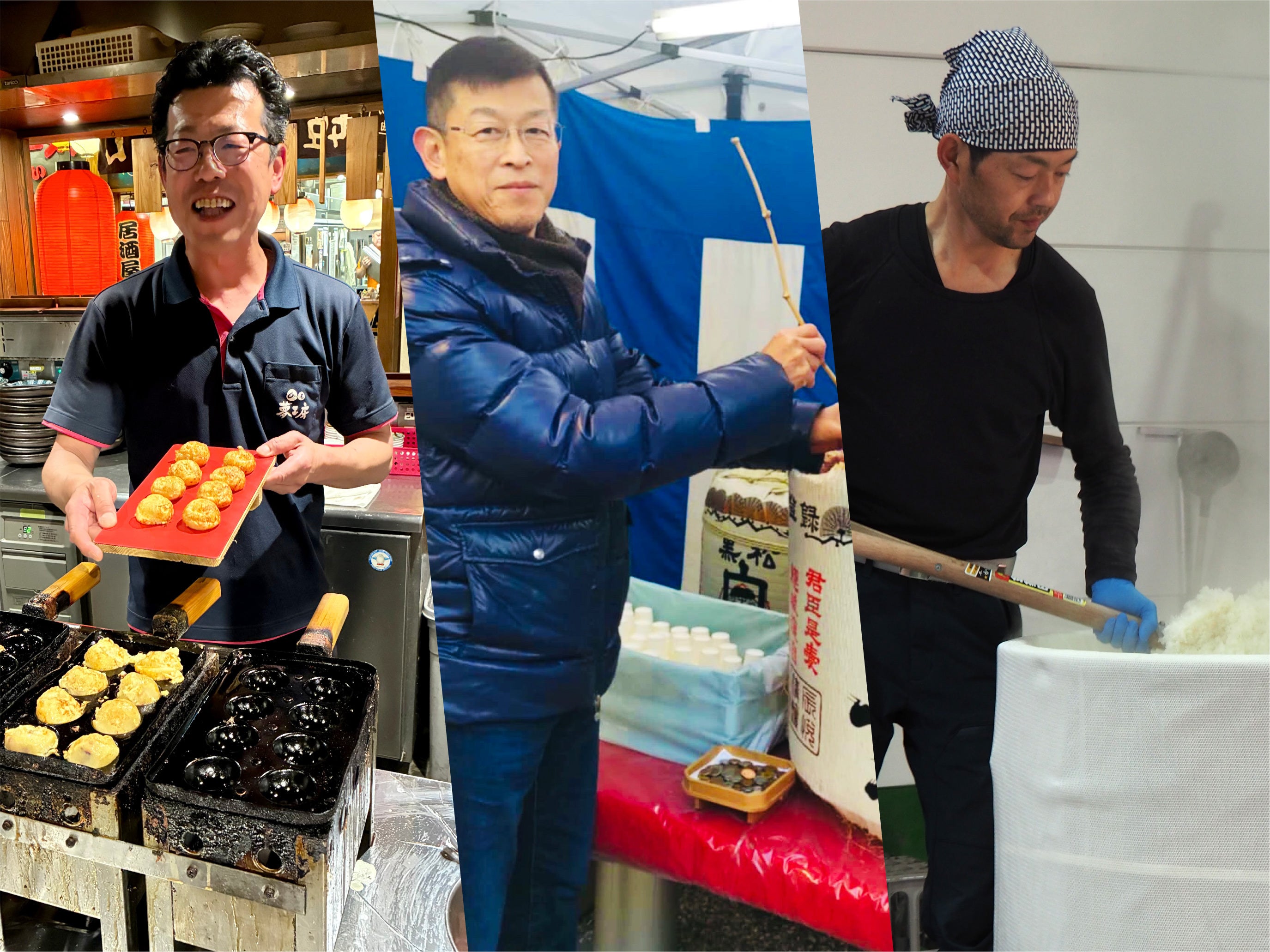 今回のプロジェクト実施にあたり、日本酒のセミナーで度々お世話になっております、明石の蔵元である合名会社茨木酒造の茨木社長さん、明石焼を全国に広める活動をされている株式会社夢工房の古志社長の3名でスタートしました。