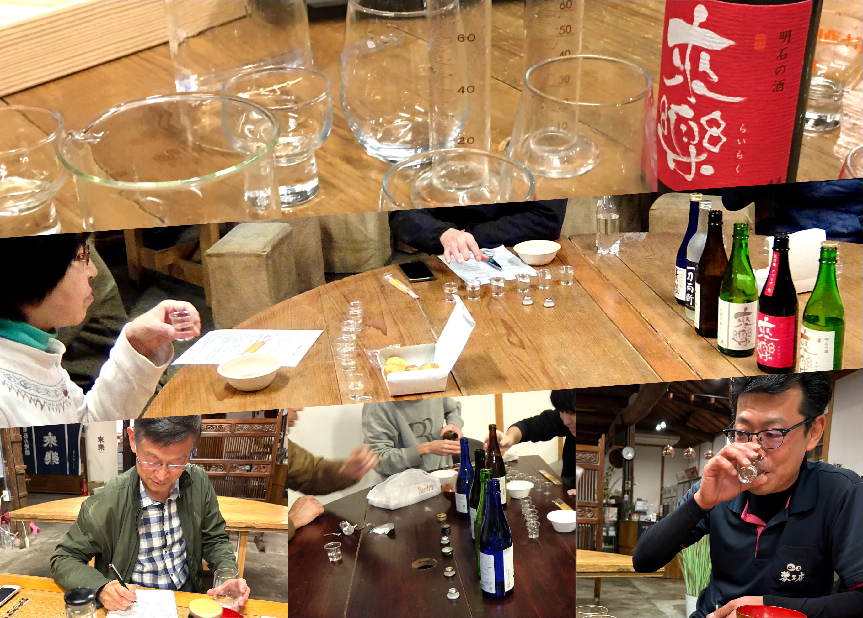それはそうで悪くはないのですが、これでは当たり前すぎて「明石焼に合う日本酒」というテーマが看板倒れになってしまうし夢がない。そこで、我々メンバー以外の方々にも加わって頂き、その後述べ16名の若者ビギナーから年配のベテラン愛飲家までのテイスティング会を3回開催し、やっと新しい切り口で「明石焼に合う日本酒」の方向性が固まりました。