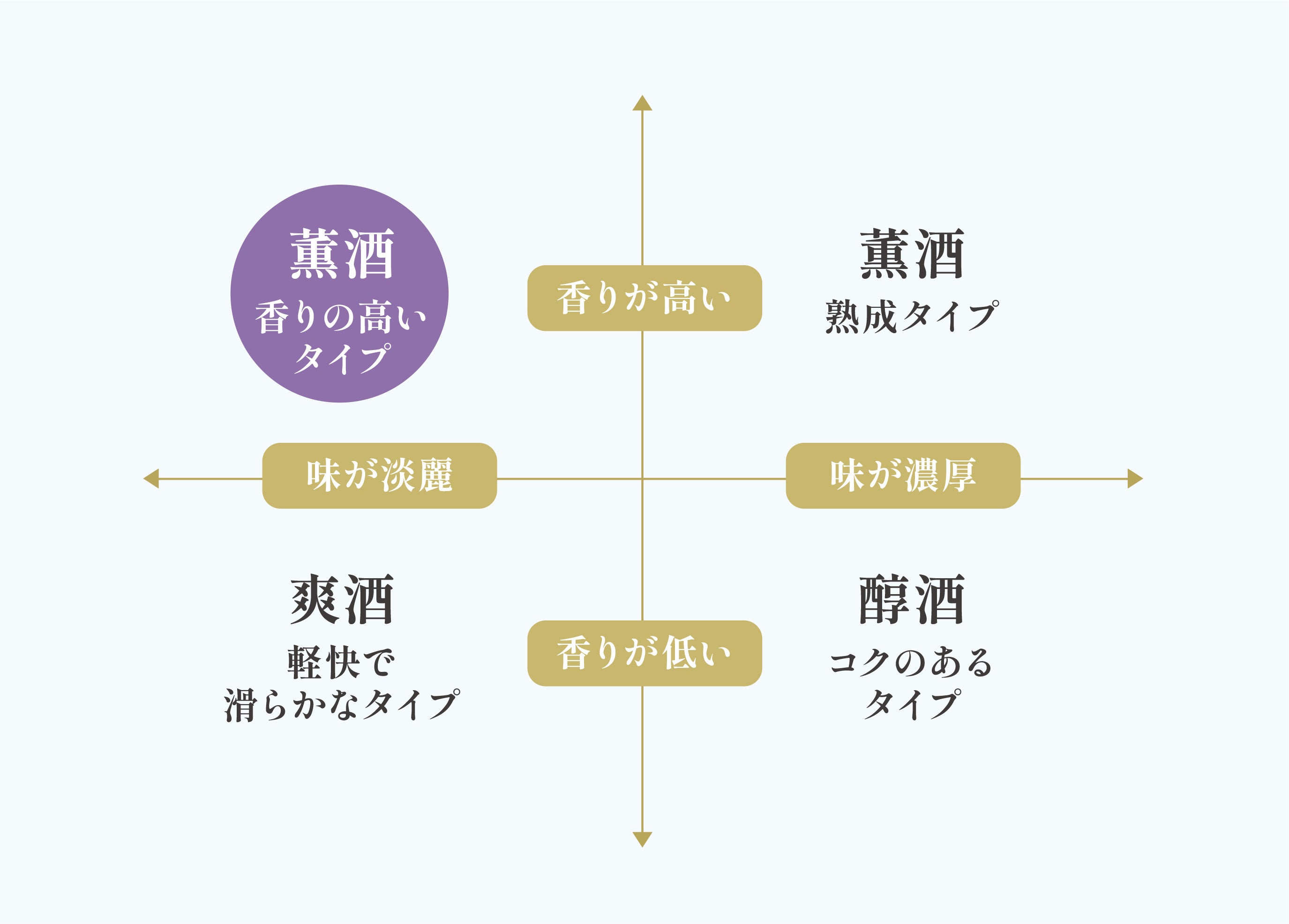※本図は日本酒サービス研究会(SSI)の香味特性別分類(4タイプ)を参考に作成
