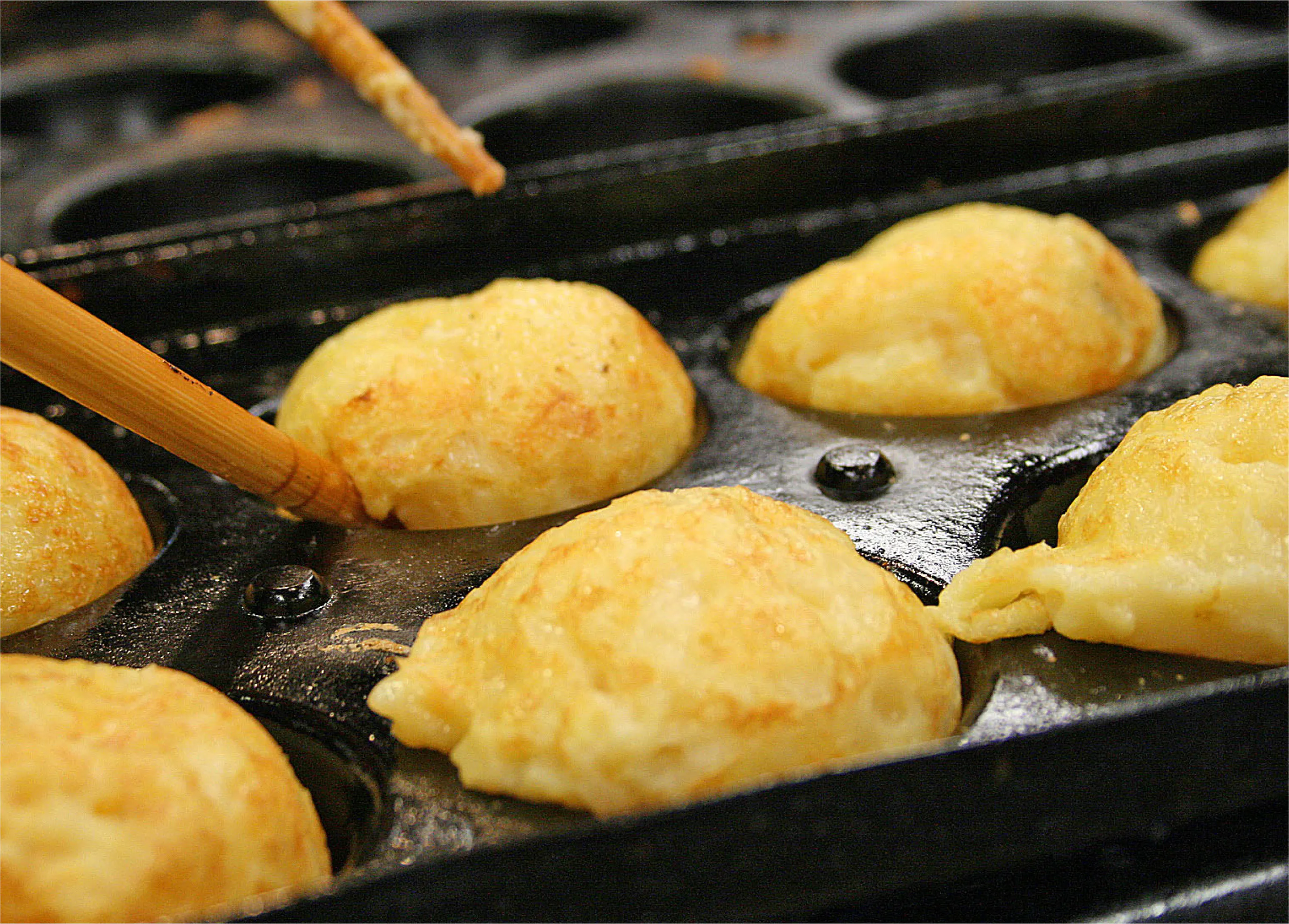 明石焼きを地元では玉子焼と言いますが、名前の通り、生地には玉子がたっぷり使用されており、この生地を銅製の専用の鍋で一つ一つ手作りで焼く事で、ふんわり柔らかだけど崩れない明石焼が出来るのです。