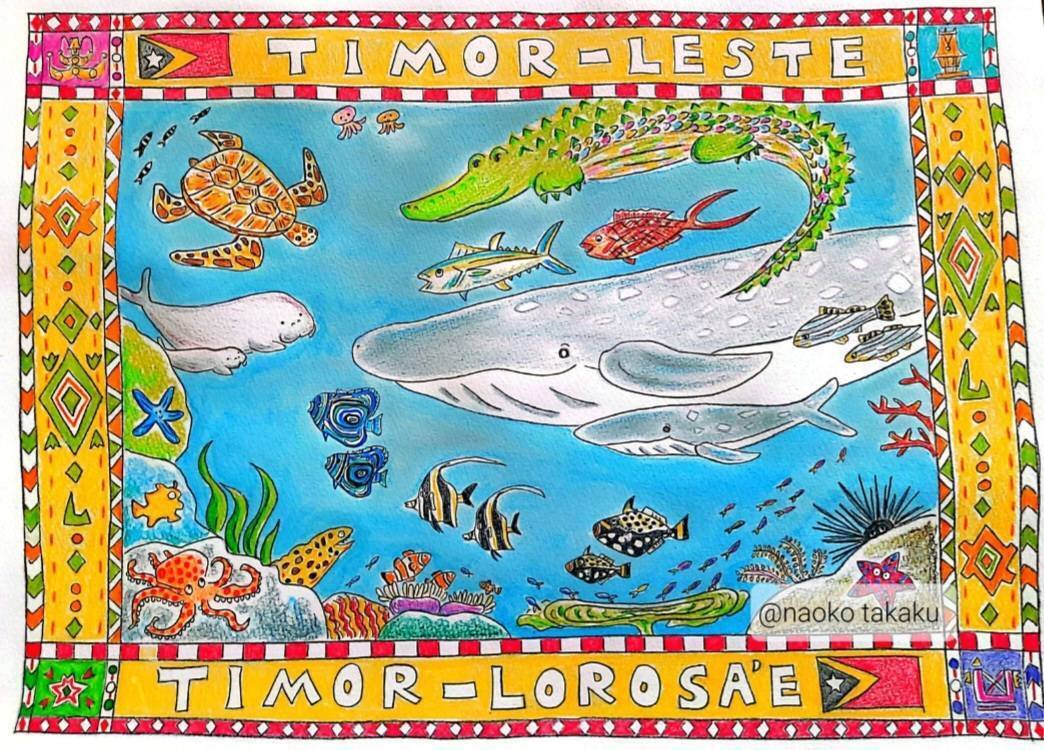 環境教育絵本の挿絵。東ティモールの色鮮やかな海の生き物たち
