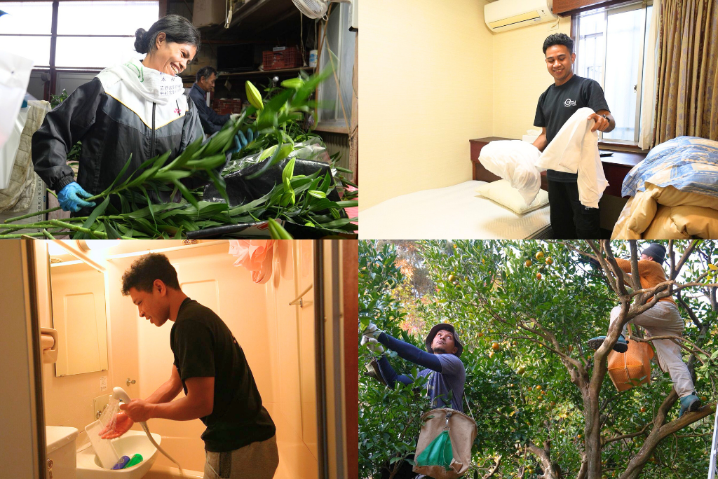 さまざまな業種で活躍する東ティモールからの技能実習生たち(MONJO VIDEO WORKS提供)