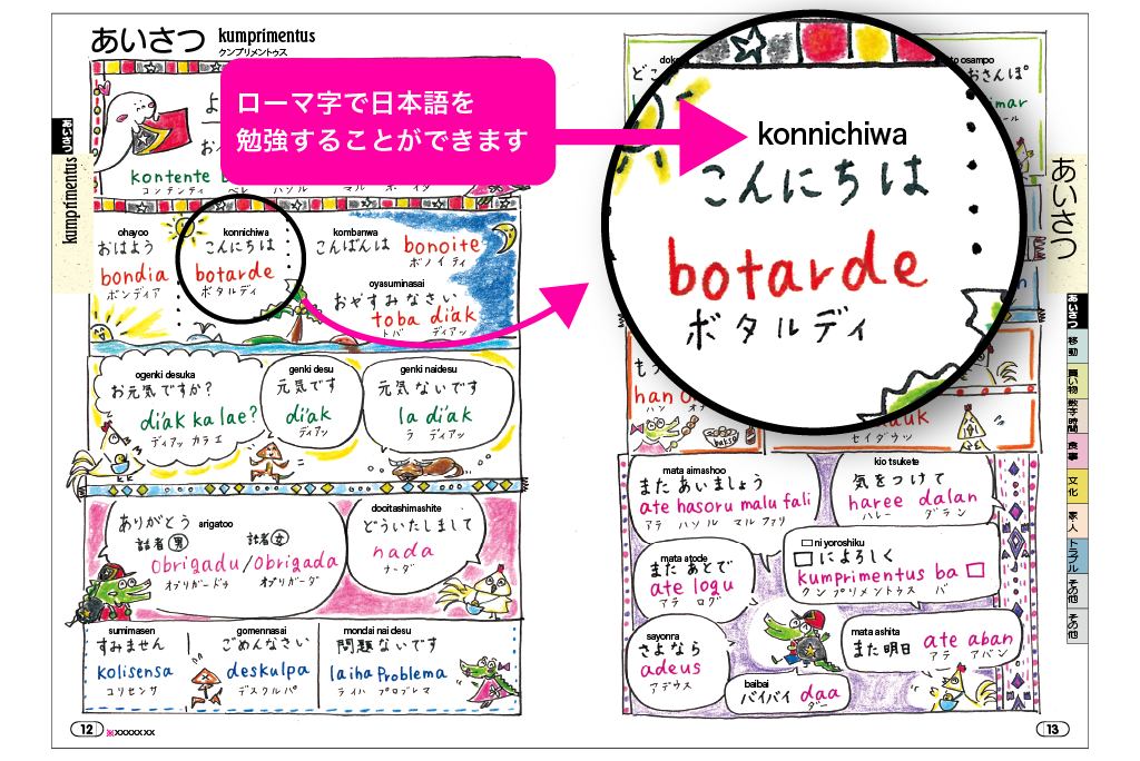 現在制作中のサンプルページは、この通りです。日本語にローマ字で読み仮名をふっているので、東ティモール人が日本語を勉強するときにも使うことができます。