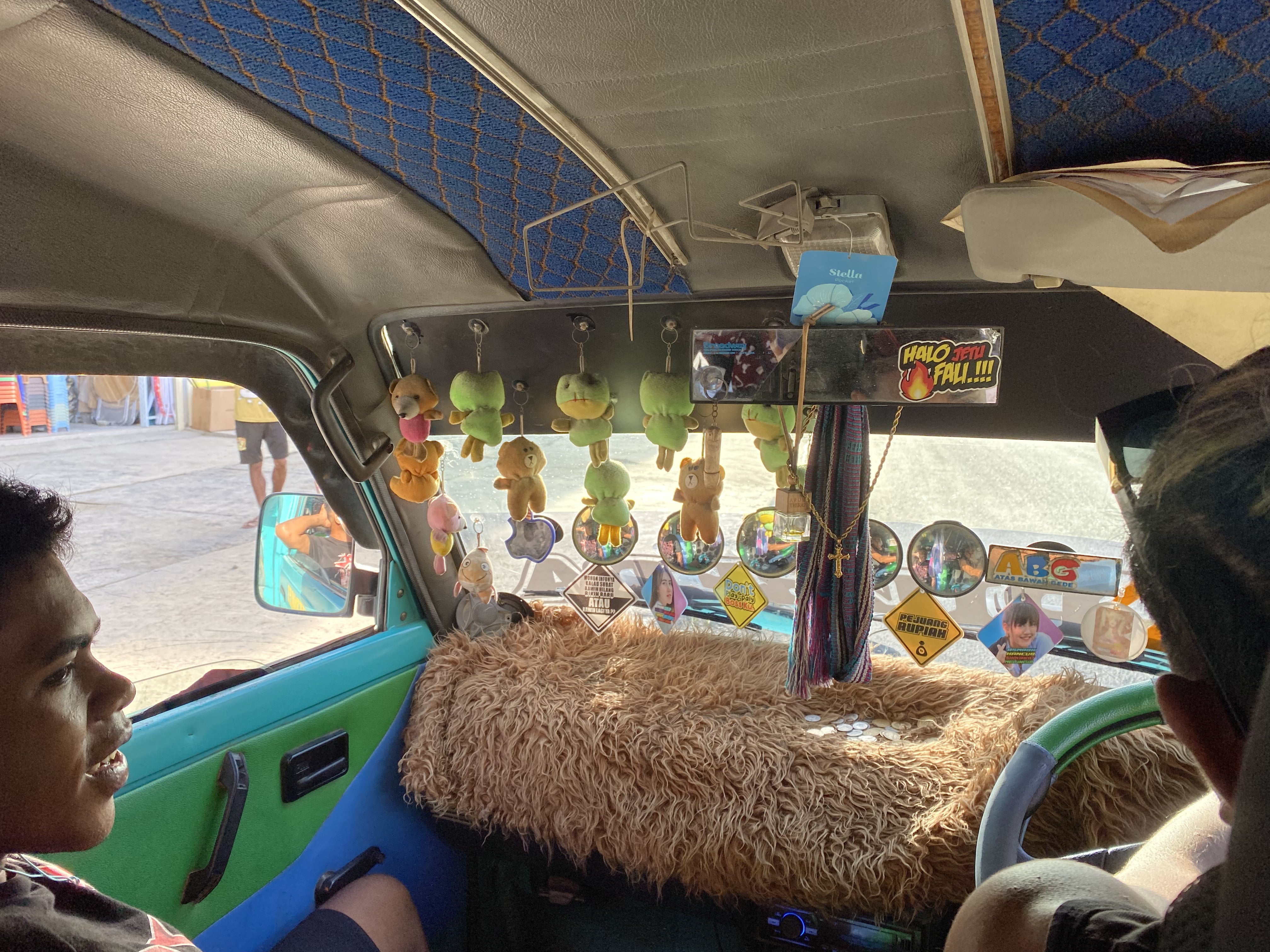 タシトルに着いたら、ミクロレットに乗り換えます。ミクロレットは1回の乗車につき約37円の運賃を支払います。これでディリの中心街まで行くことができます。ミクロレットの車内は謎めいたセンスの飾り付けがされていることが多いので、いつもそれを見て楽しく乗っています。