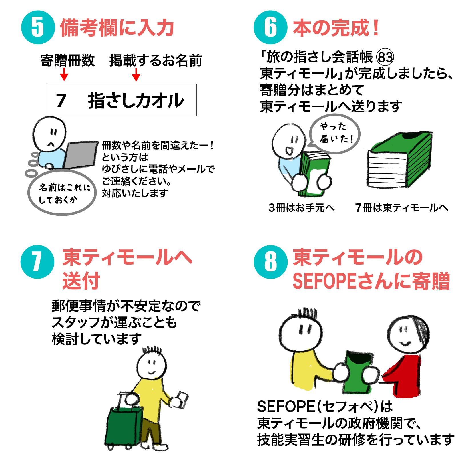 「自分のは不要。全部東ティモールへ」というのはNGとしています。必ず1冊は「My会話帳」にしてください。素晴らしい本が出来上がりますので、実際にページを開いてお楽しみください。