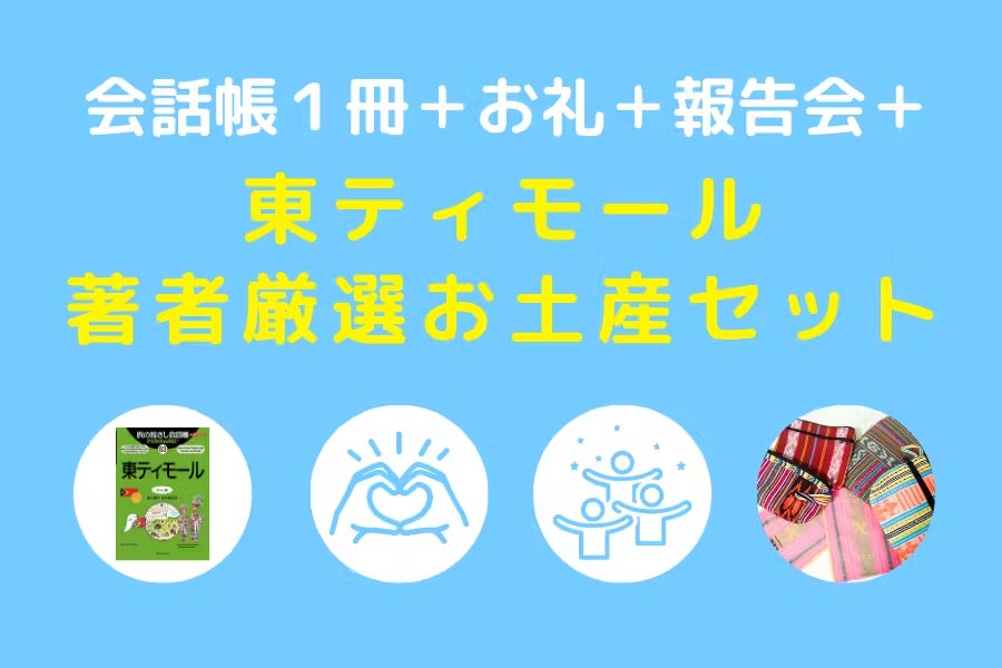 そんな交流会のリアル版です。東京までお越しになられる方に限られてはしまいますが、だからこそ来られる方は、とてもとても貴重な機会です。オンライン以上に、実際の指さし会話帳を持ってやりとりすることができます。もちろん、言語面でのサポートも入ります。実際に会ったらそれはもう、コレガ(テトゥン語で友達)です!きっと、あなたの人生に、東ティモールのドアが開くことでしょう。個人的には、一番推したいリターンというか、参加している内容です。