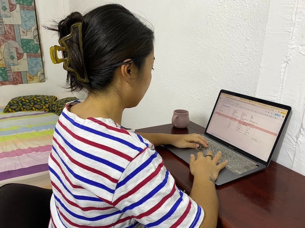第二部を担当する松村優衣子さんの執筆風景@東ティモール。寝室の一画を仕事スペースにされている、とのこと。