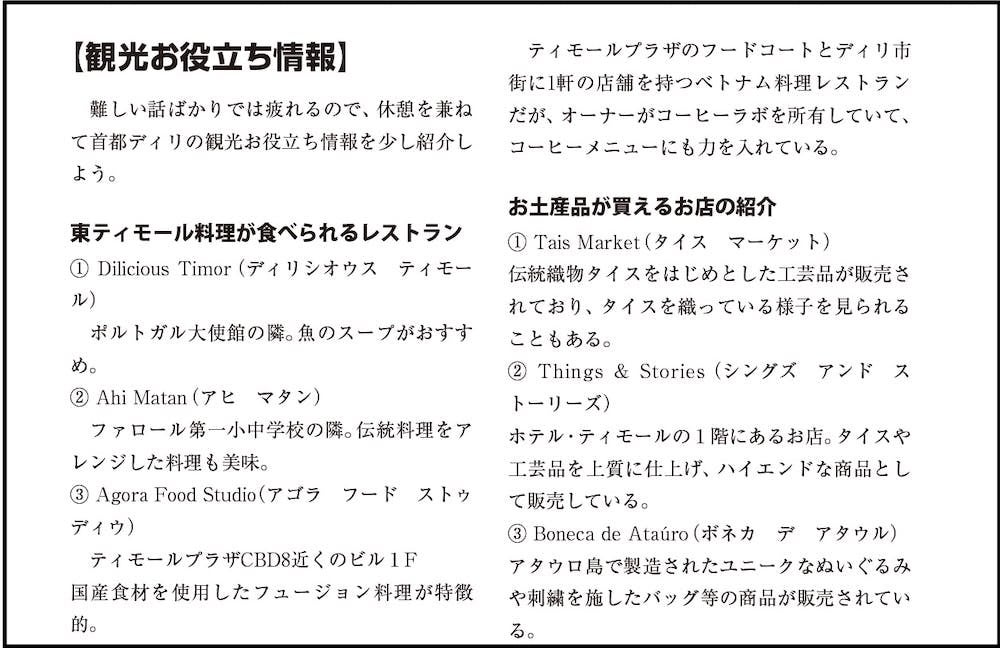 第二部のページより。東ティモールの首都ディリのおすすめレストラン情報も。現在、日本語の観光情報がほとんどないなか、とても貴重な情報です!