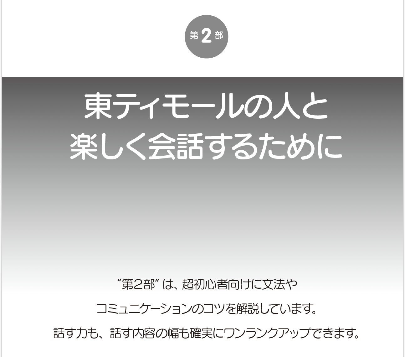 今回、第二部をどんなページにするか、著者の高久さん、松村さんとともに議論を行いました。その結果、定番の文法やコミュニケーションのコツととともに、旅のガイドブックがほとんどない東ティモールの観光情報や旅行に役立つ情報を紹介することが決まりました。