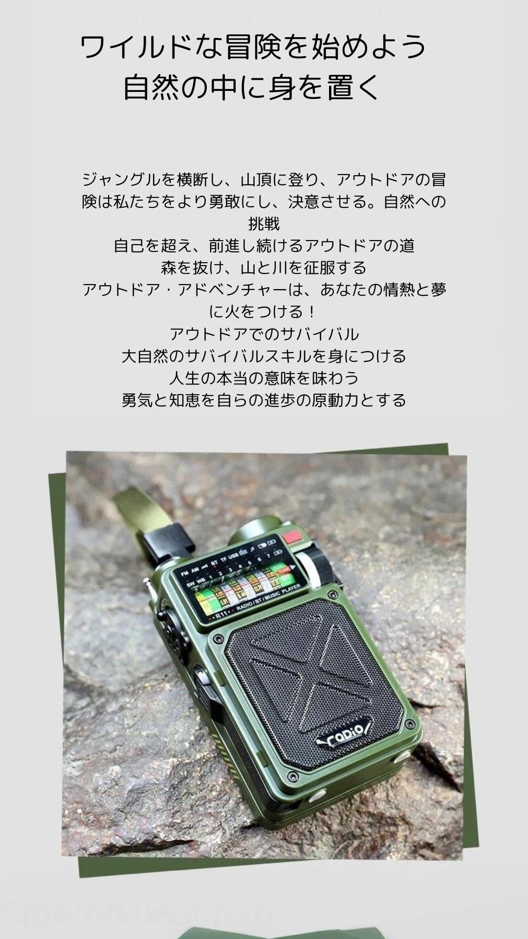 このポータブルラジオは、緊急時・非常時だけなく、アウトドアアクティビティや旅行、日常の使用に最適な頼れるパートナーとなるでしょう。