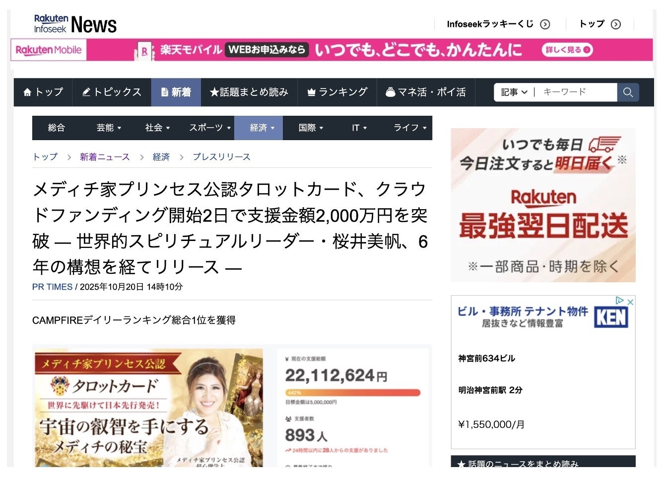 クラウドファンディングの記事が 楽天ニュース(Infoseek) に掲載されました!