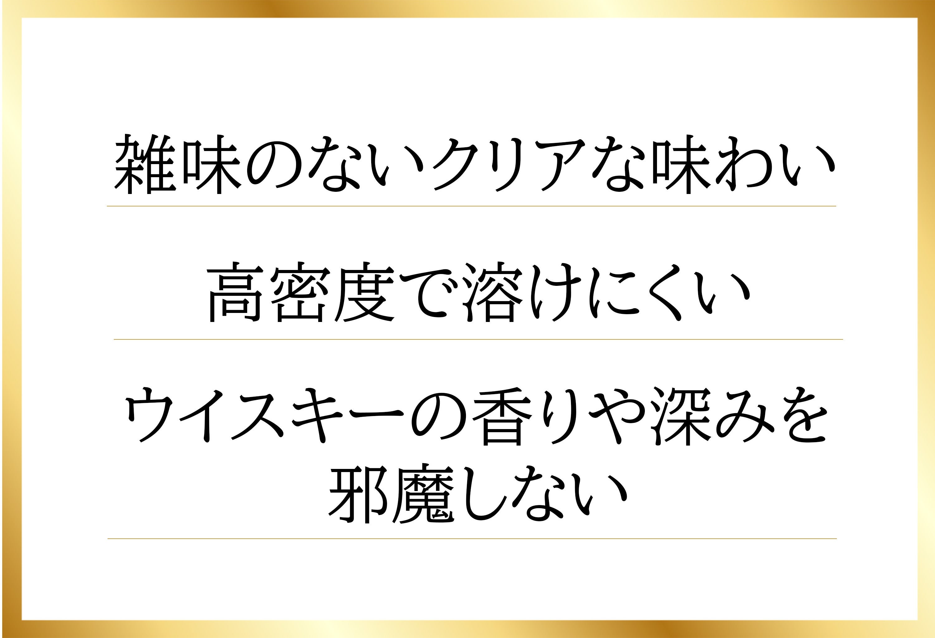 しかも、溶けにくく味を薄めないため、ウイスキーやハイボールの風味を長く楽しめます。