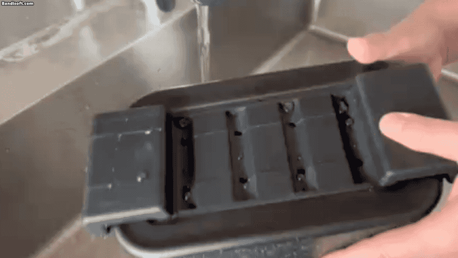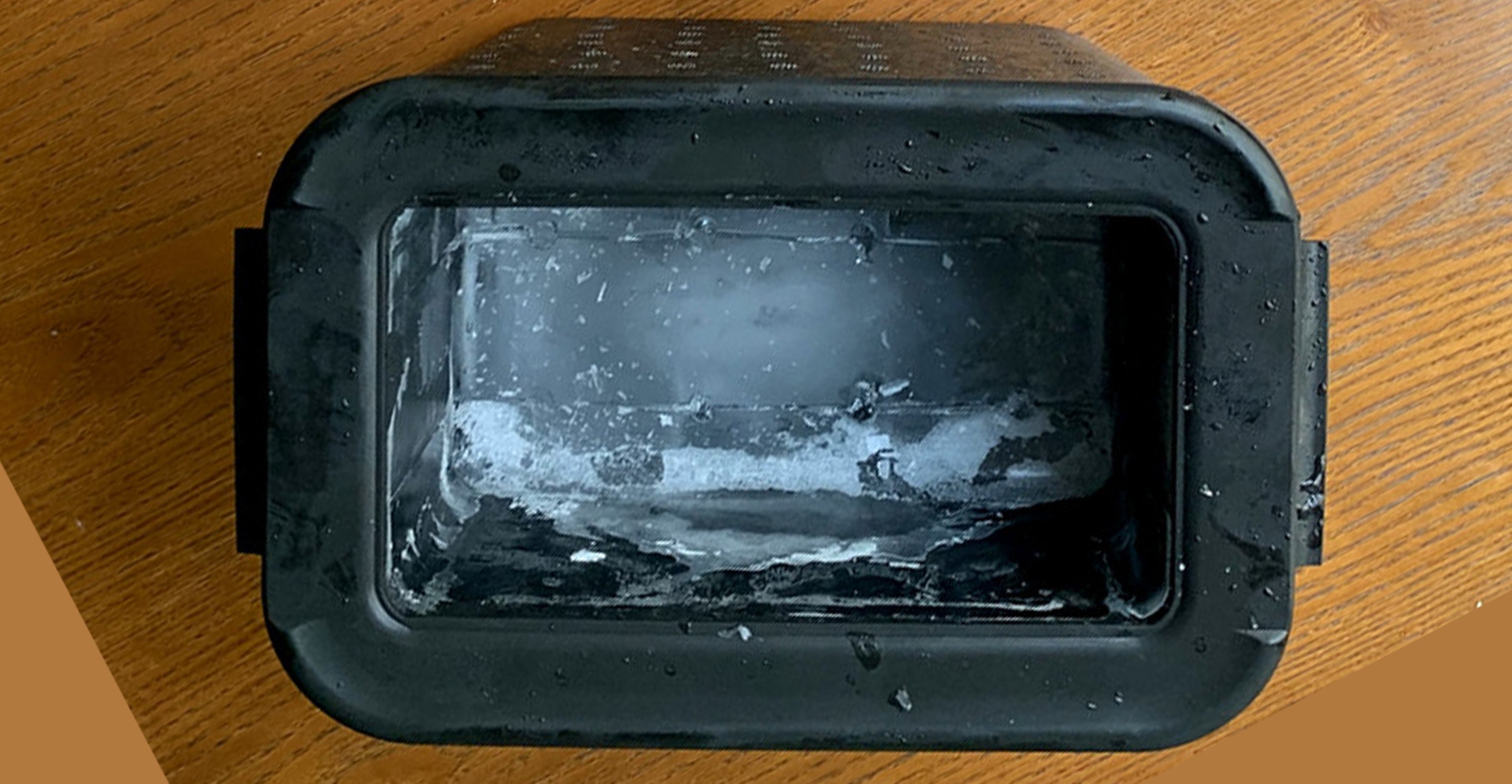 モールド内で生成された8個の透明氷とは別に、カルキや雑味の元となる成分は、箱の底に白く固まって現れます。これが、不要な成分がしっかりと排出された証です。