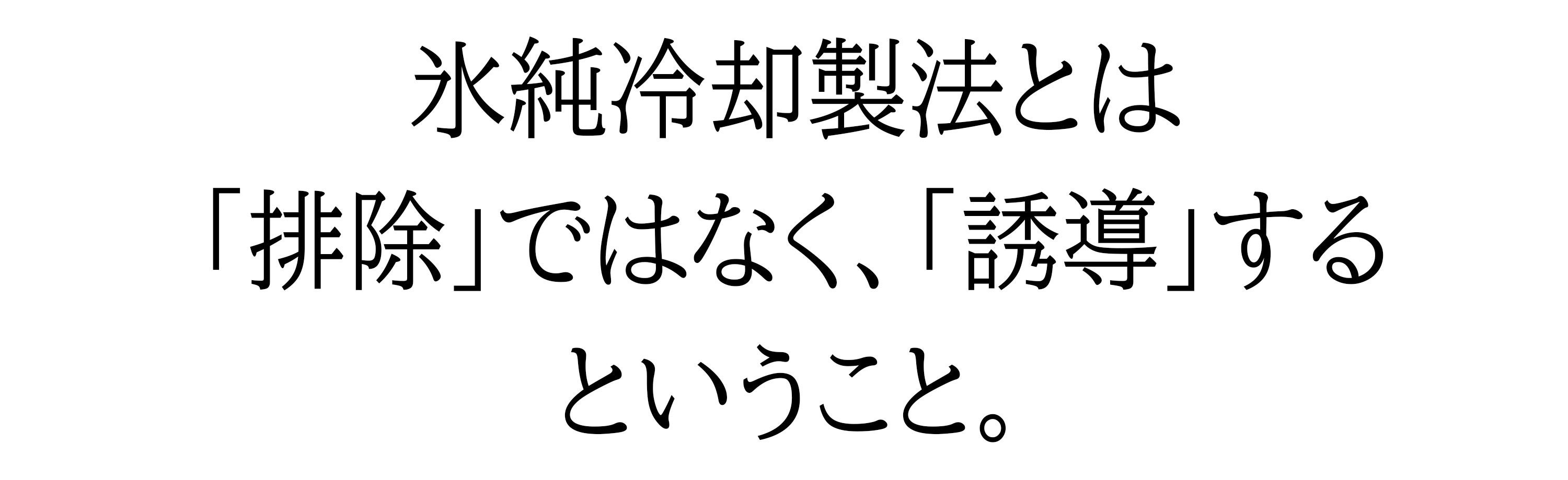 氷屋の技術を応用した特別な一方向冷却構造により、氷は上から下へとゆっくりと凍結。不純物や気泡は、最後に凍る最下部へ自然と押し出されていきます。