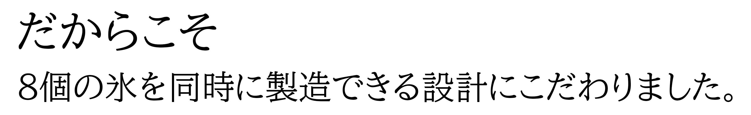 しかし、「モルトクリスタル」は違います。独自の設計により、一度に最大8個の透明氷を同時に作ることが可能。冷凍庫にストックしやすく、いつでも“極上の一杯”をすぐに用意できる環境を整えます。