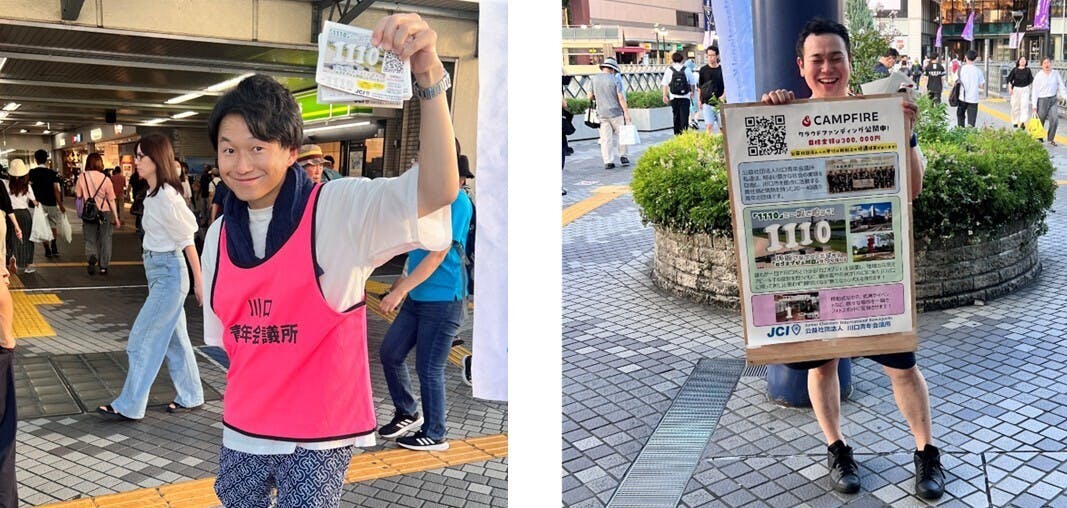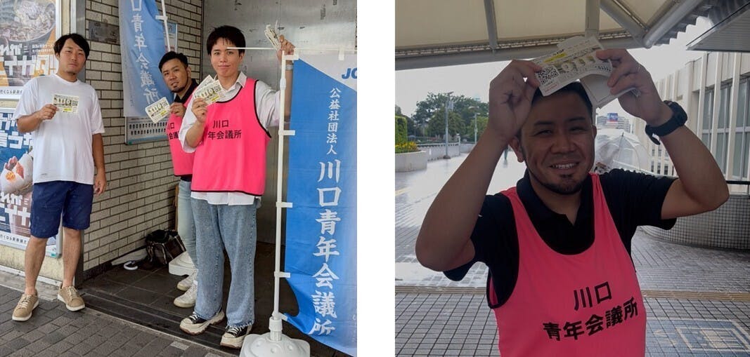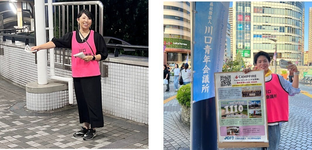 川口青年会議所メンバーによる「ロゴオブジェプロジェクト」のビラ配りを実施しました!