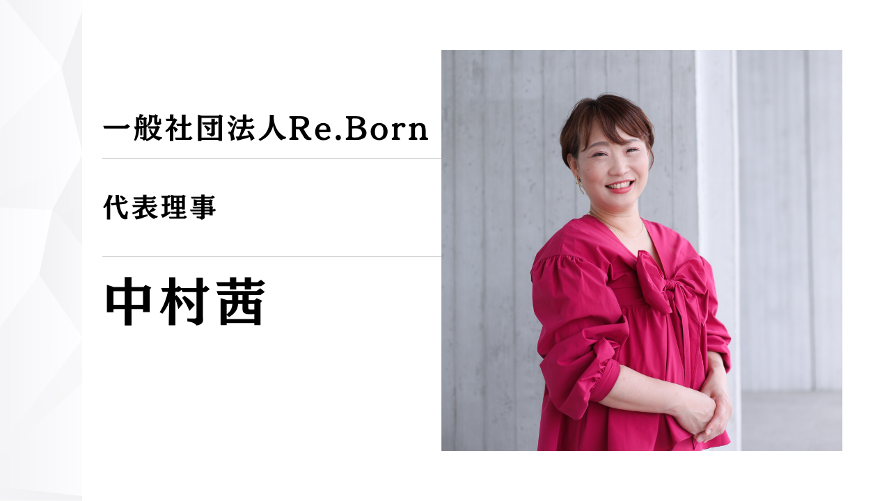 一般社団法人Re.Born 代表理事 中村茜と申します。