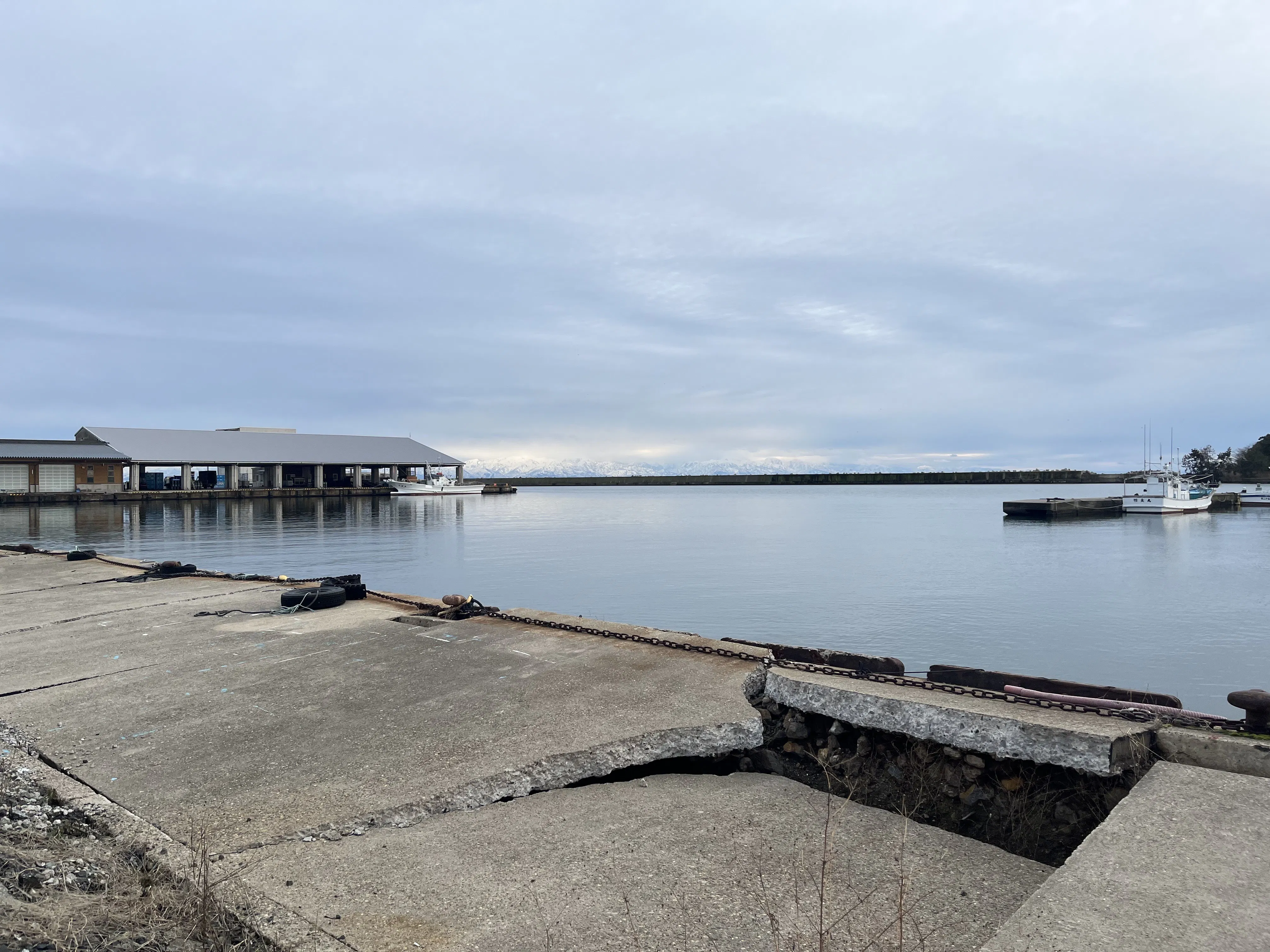 地震により店舗兼加工場の建物は半壊、設備は損傷し使用不能となりました。また、蛸島港が被災し、魚の仕入れもできなくなりました。