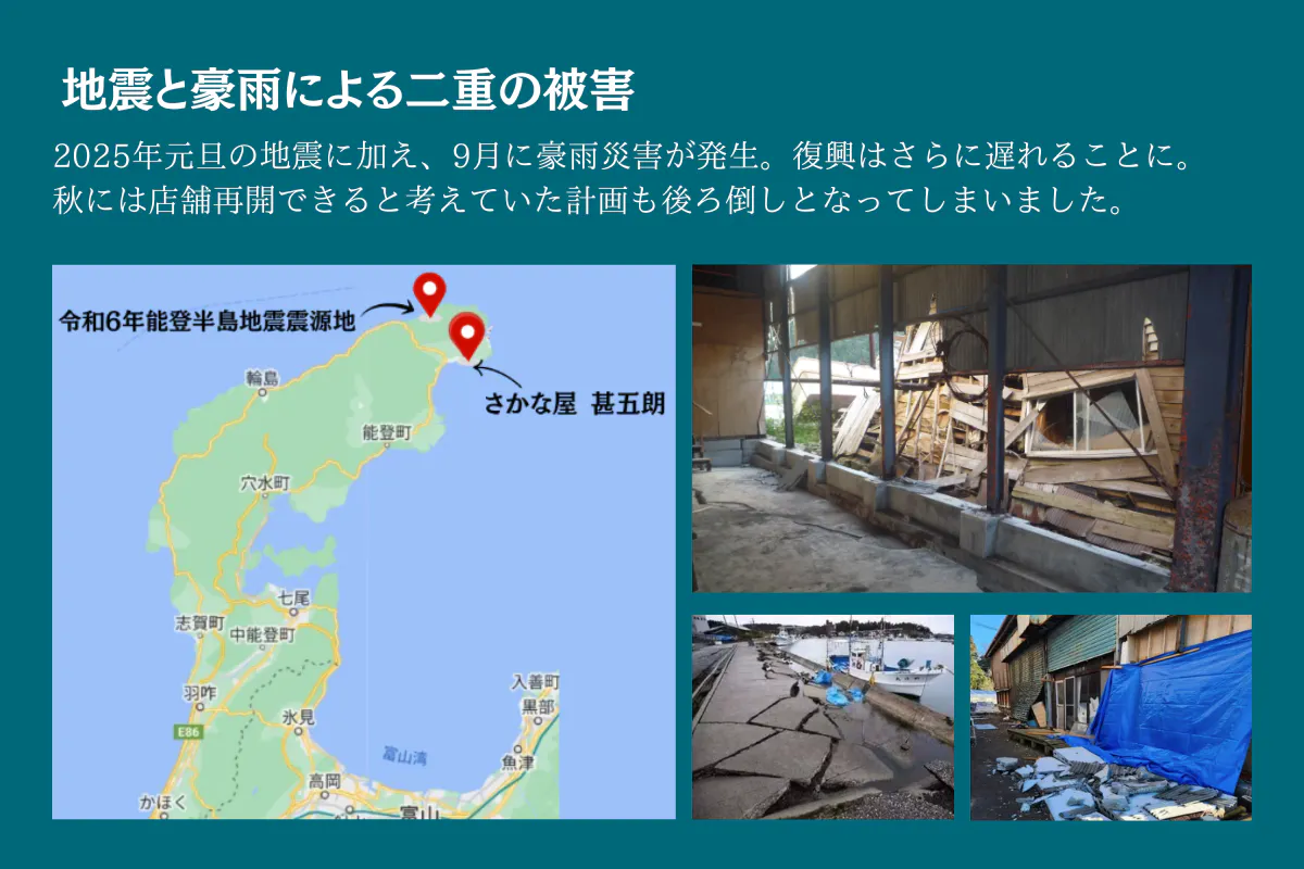 しかし2024年元旦、これまで以上の大きな地震があり、店舗兼加工場は解体判定を受け、一瞬にして生計の基盤を失ってしまいました。