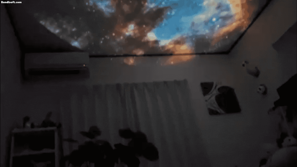 投影角度を360°ご調整いただけます。また天井だけでない、部屋全体にきれいに投影できるよう調整する機能も搭載いたしました。
