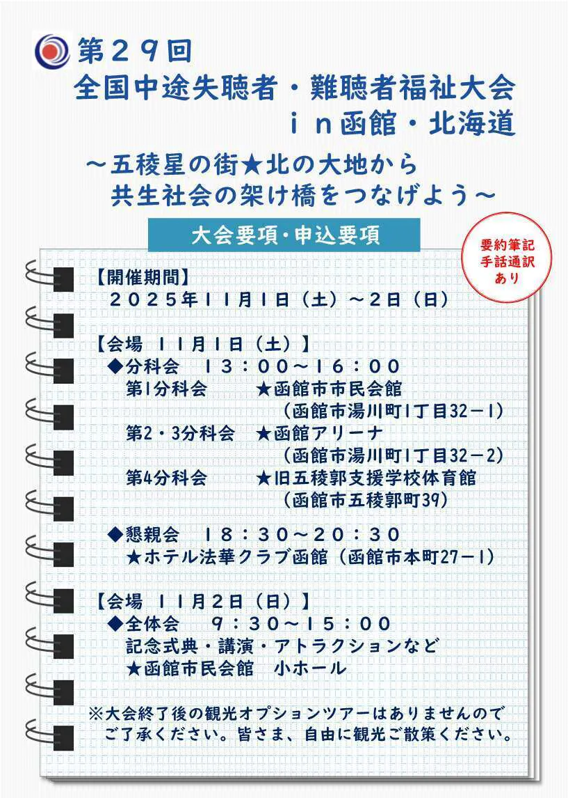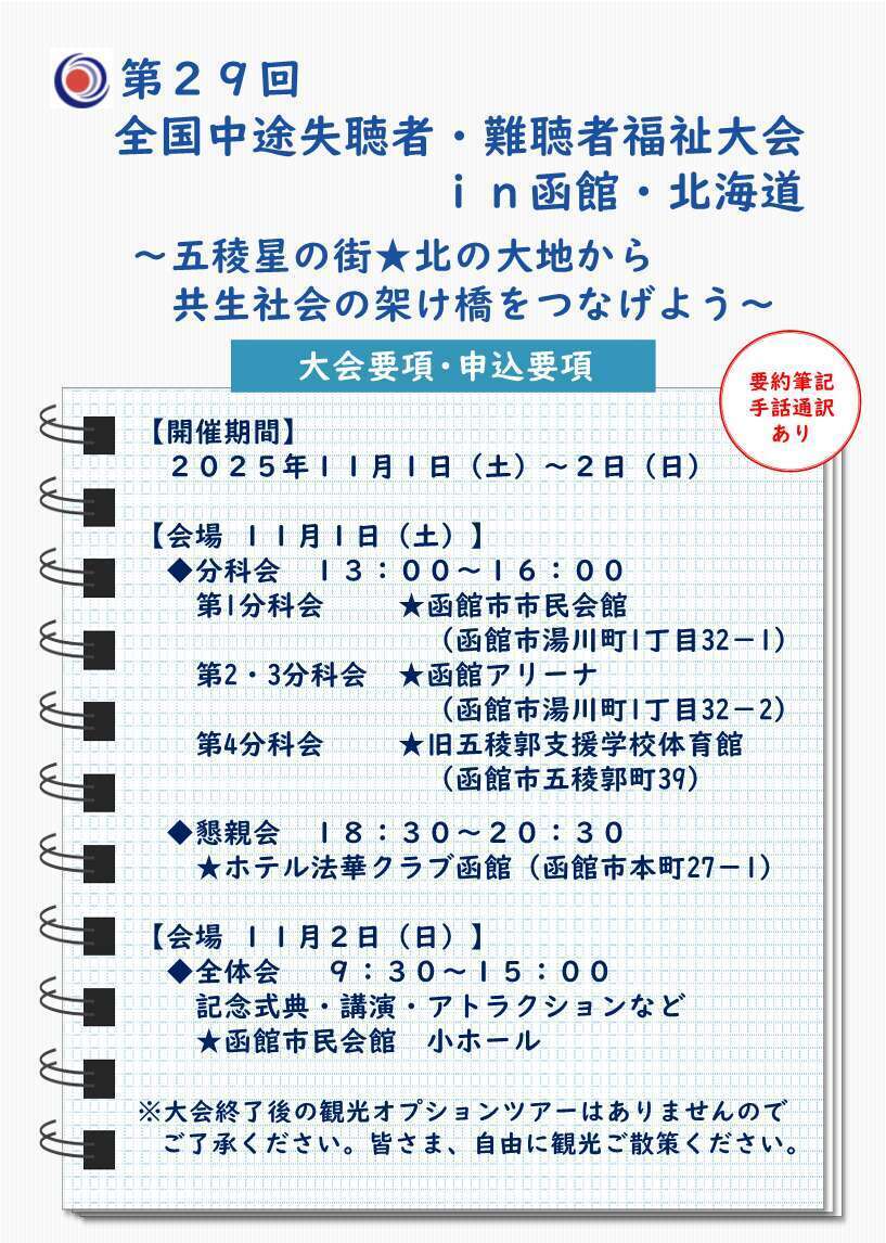 全国中途失聴者・難聴者福祉大会in函館・北海道 参加申込み受付開始!