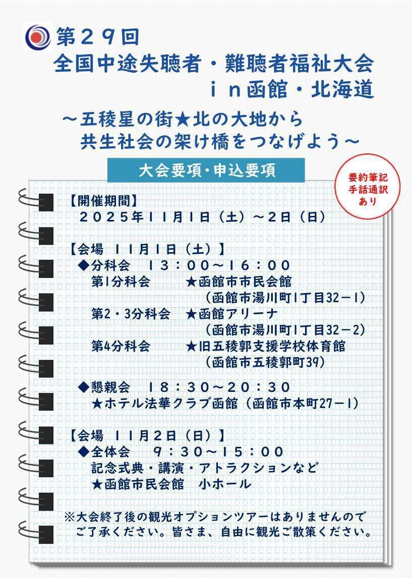 全国中途失聴者・難聴者福祉大会in函館・北海道 参加申込み受付開始!本プロジェクト公開翌日の8月1日(金)とうとう「参加申込み専用ページ」の公開にこぎ着けました!https://va.apollon.nta.co.jp/zennancho_hakodate/聞こえない、聞こえにくい方はもちろん、ご家族・友人知人意思疎通支援者の方など、幅広くご参加いただければと思います。