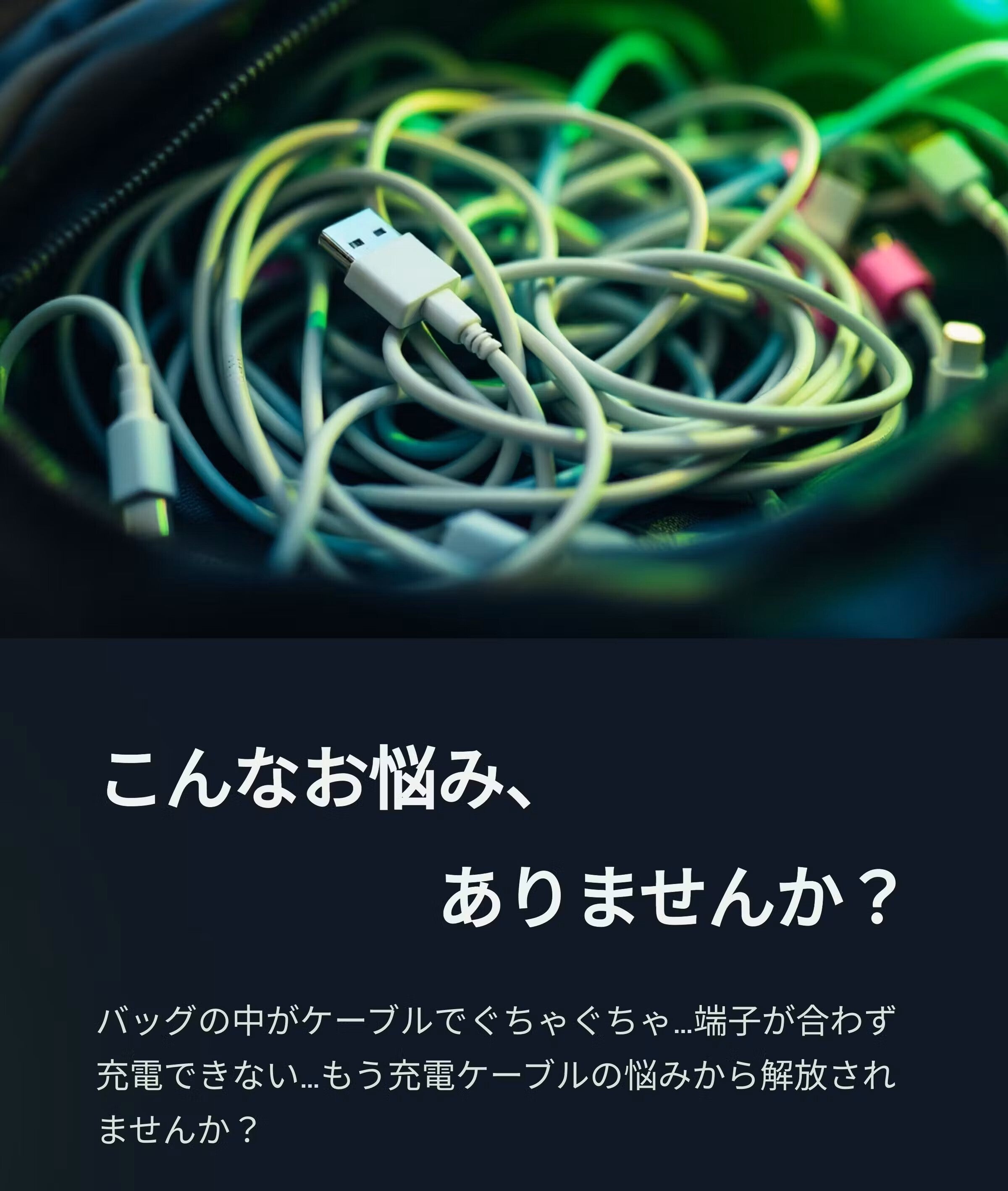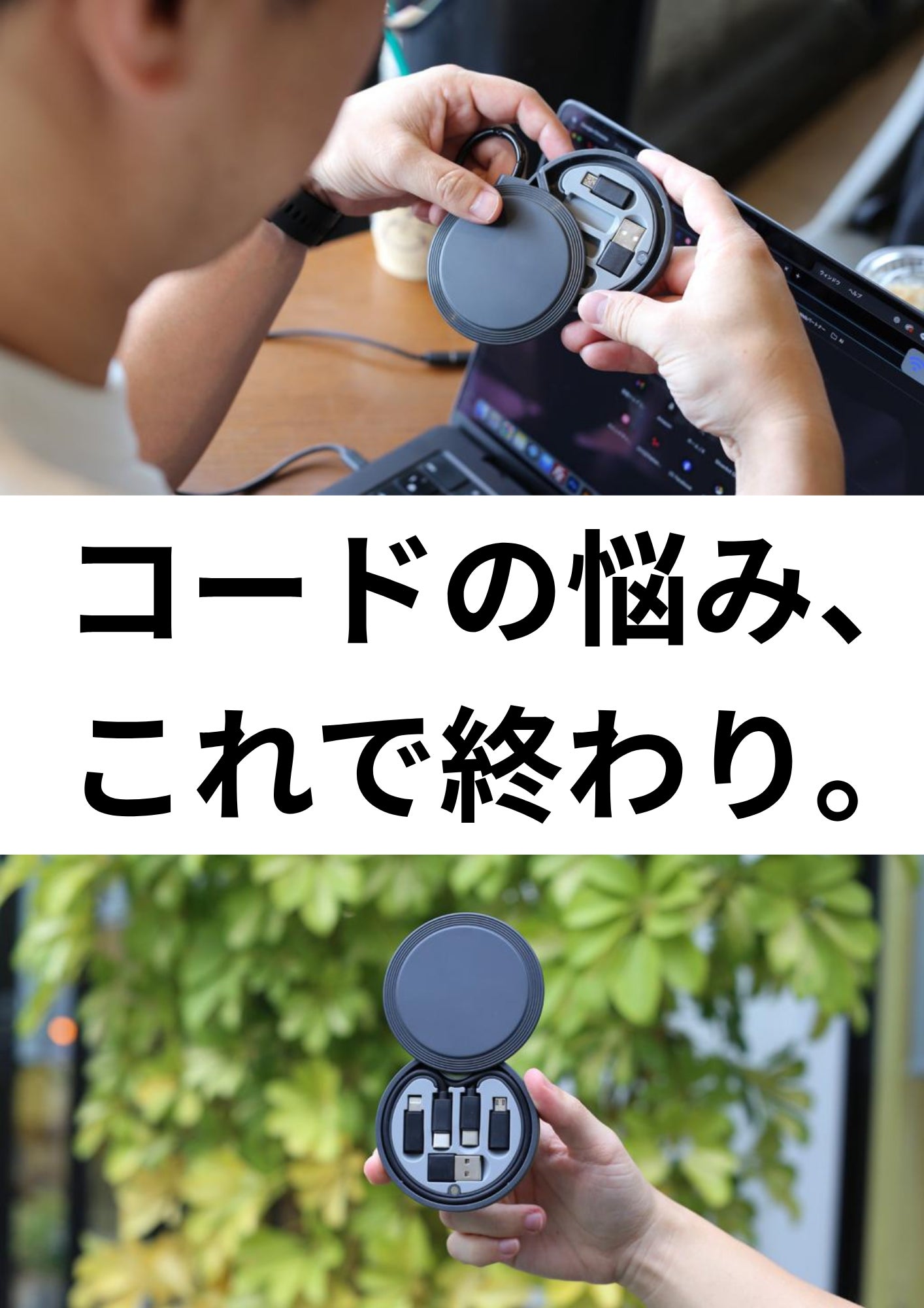 【6in1CABLE SET】は、かさばるケーブル問題を解決する手のひらサイズの頼れる相棒です。