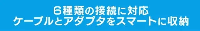 6種類の接続に対応するケーブルとアダプタをスマートに収納。