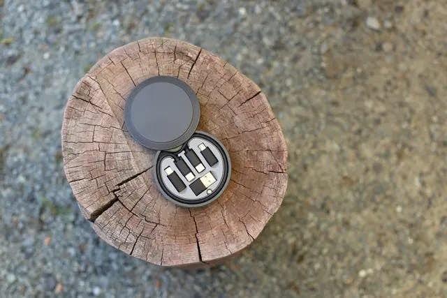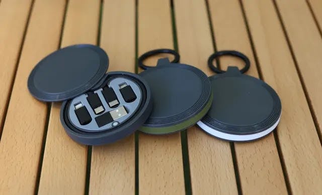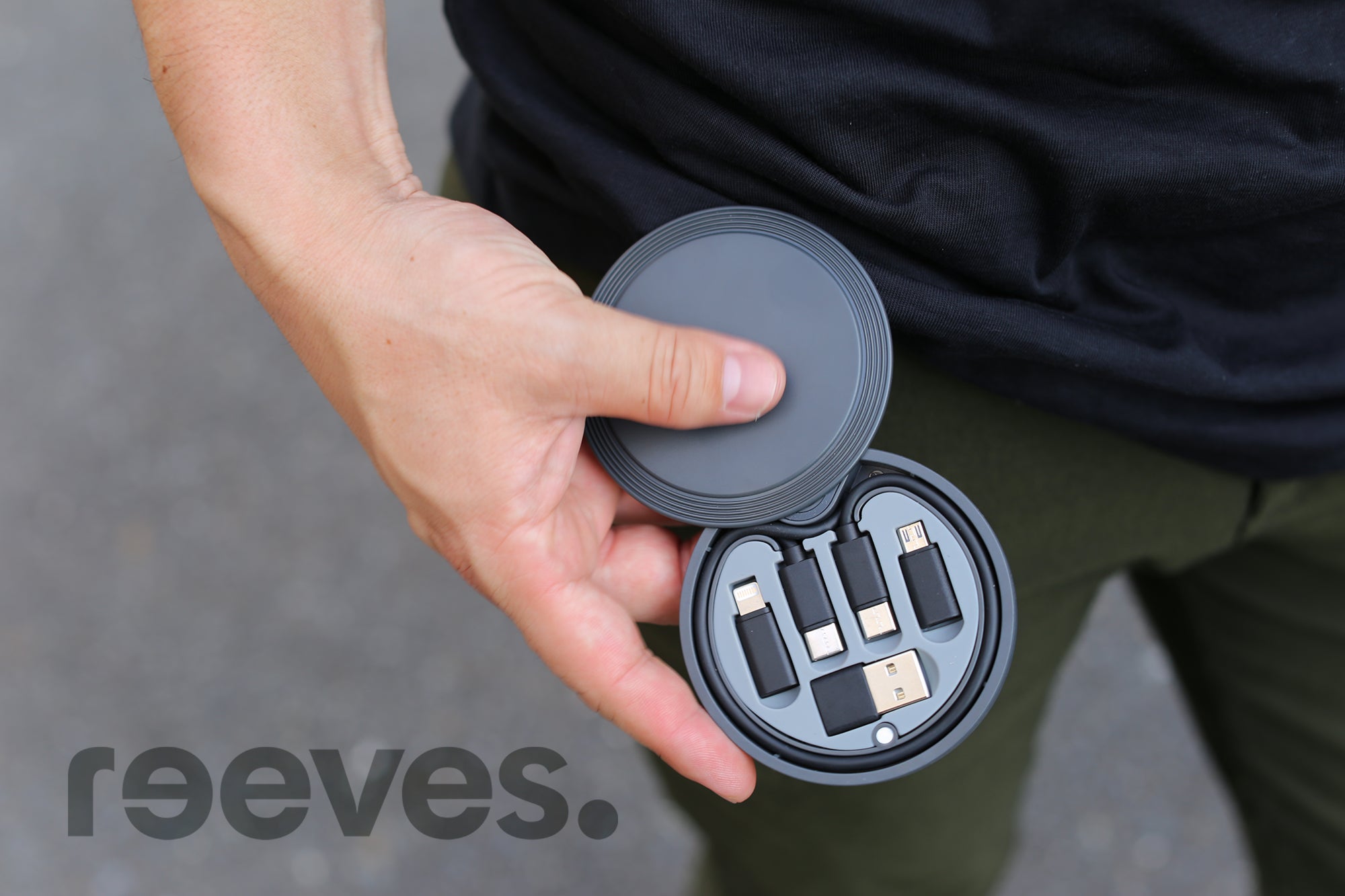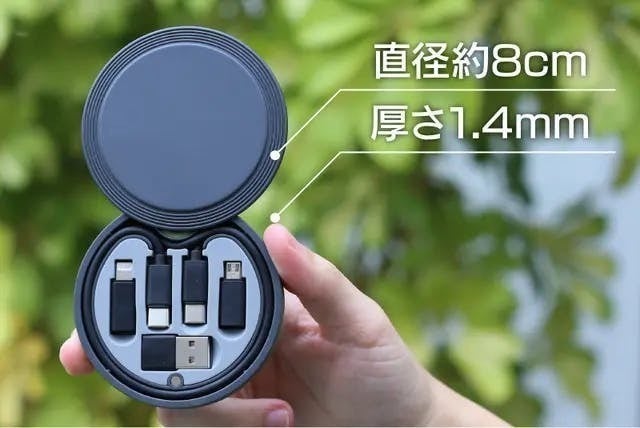 【6in1CABLE SET】のケースの直径は約8cm、厚さも1.4mmのコンパクト設計。
