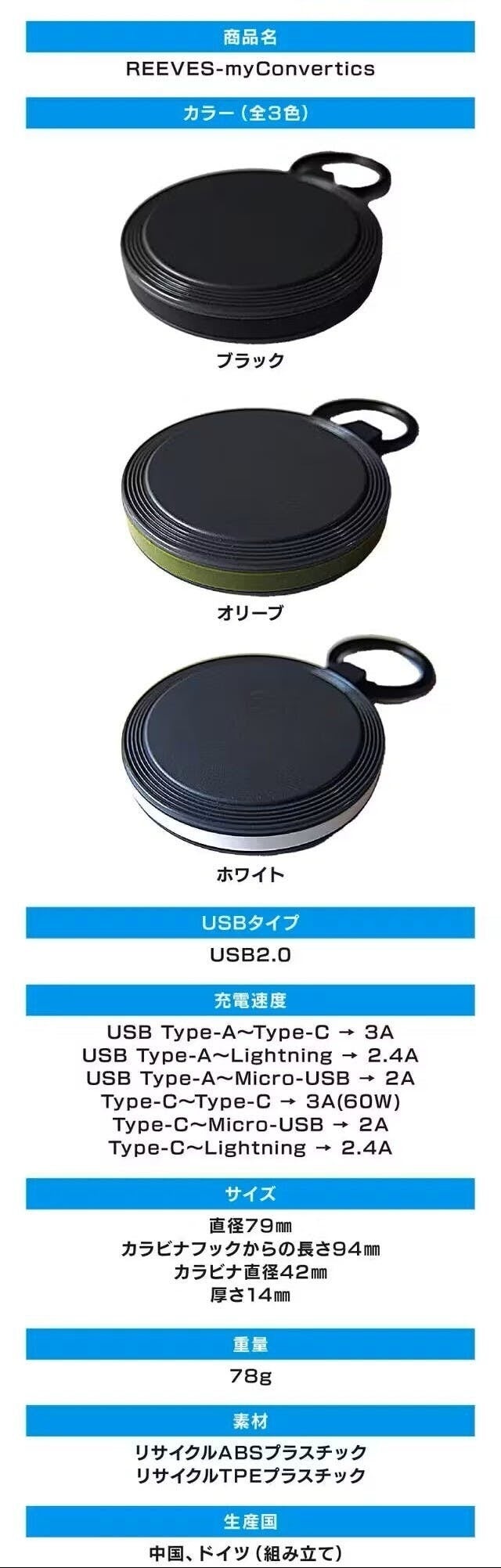 また【6in1CABLE SET】はワンタッチでベルトループやバッグのストラップに脱着できるカラビナも設けました。