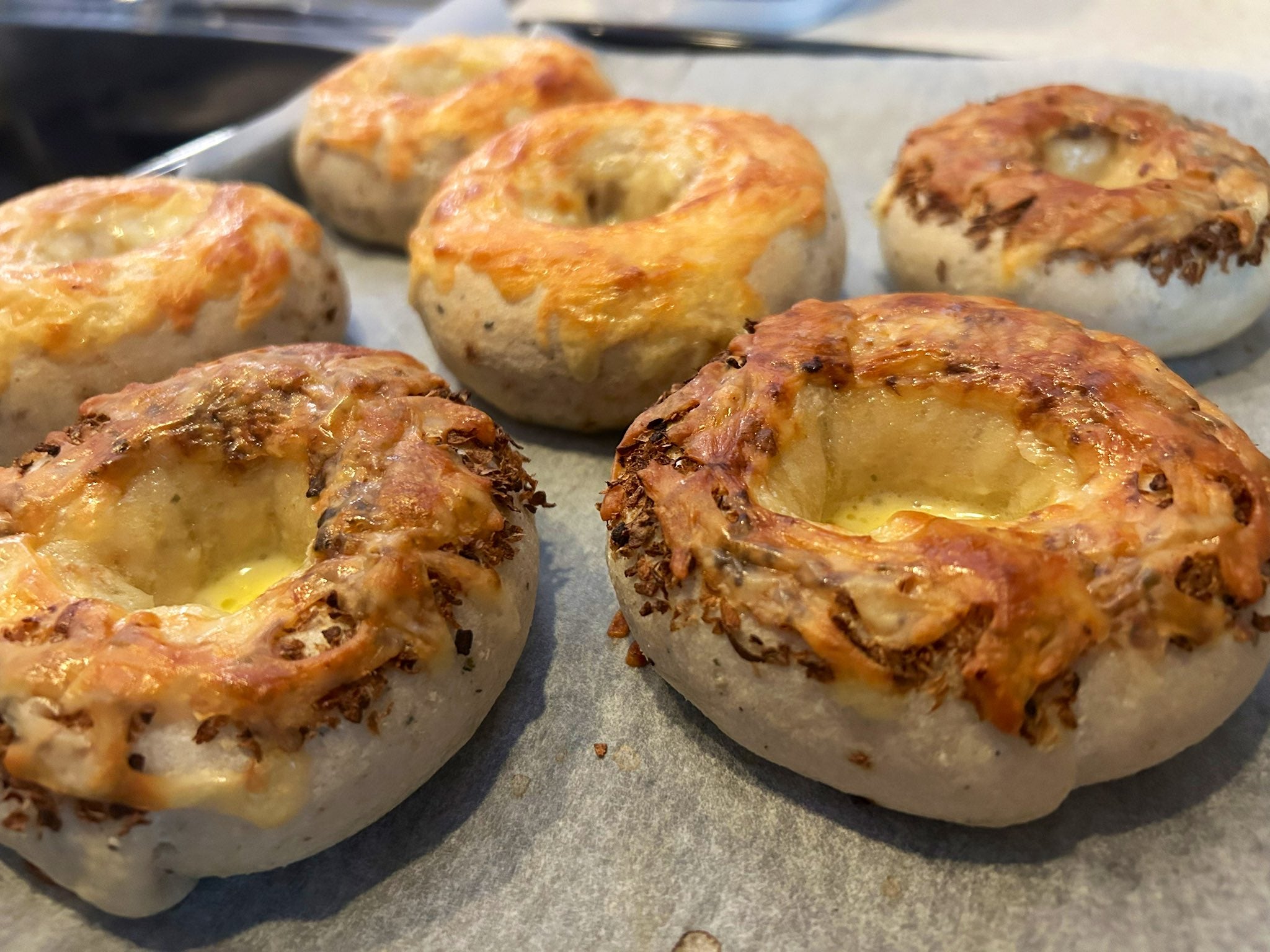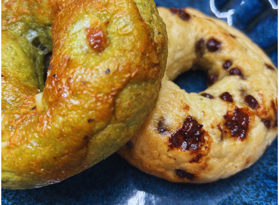 (左:小松菜ベーコンチーズ、右:チョコチップ)