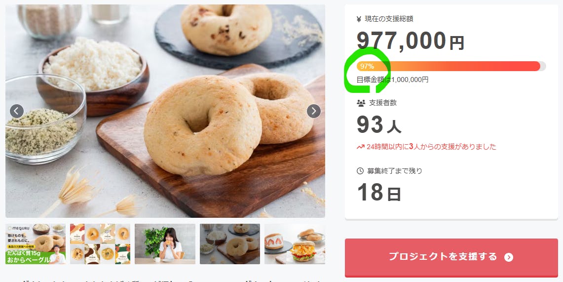 前回の投稿から2日。ついに目標達成まであと3%まで参りました!!