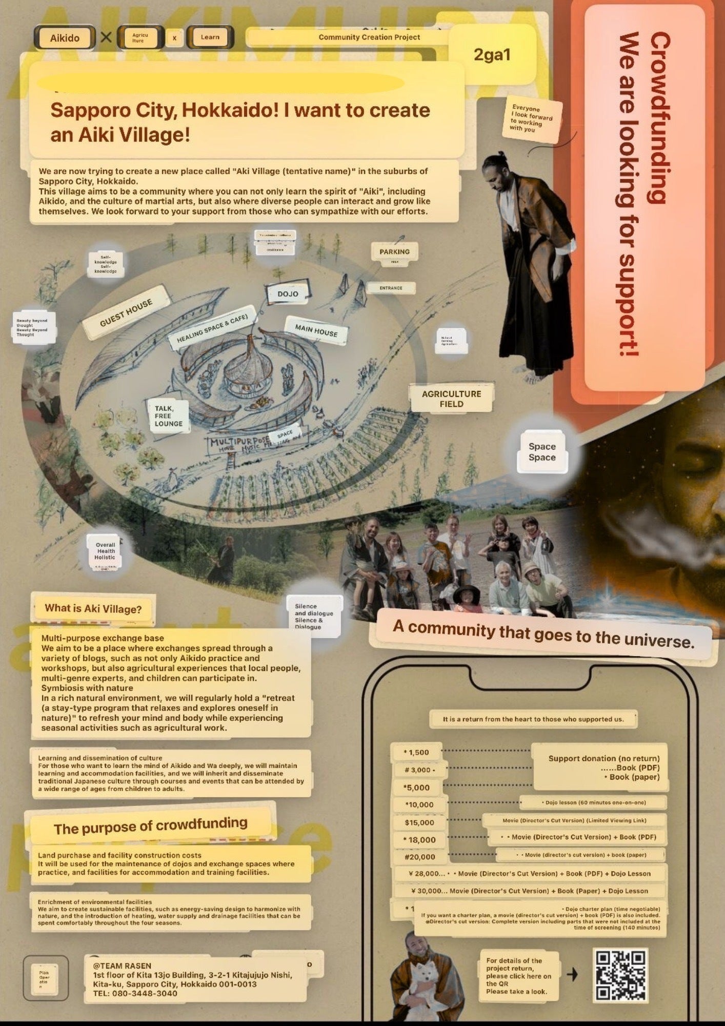 地域の方々や、国内外からの訪問者が集い、合気道や農業などのプロジェクトを通して交流が生まれる場を目指します。