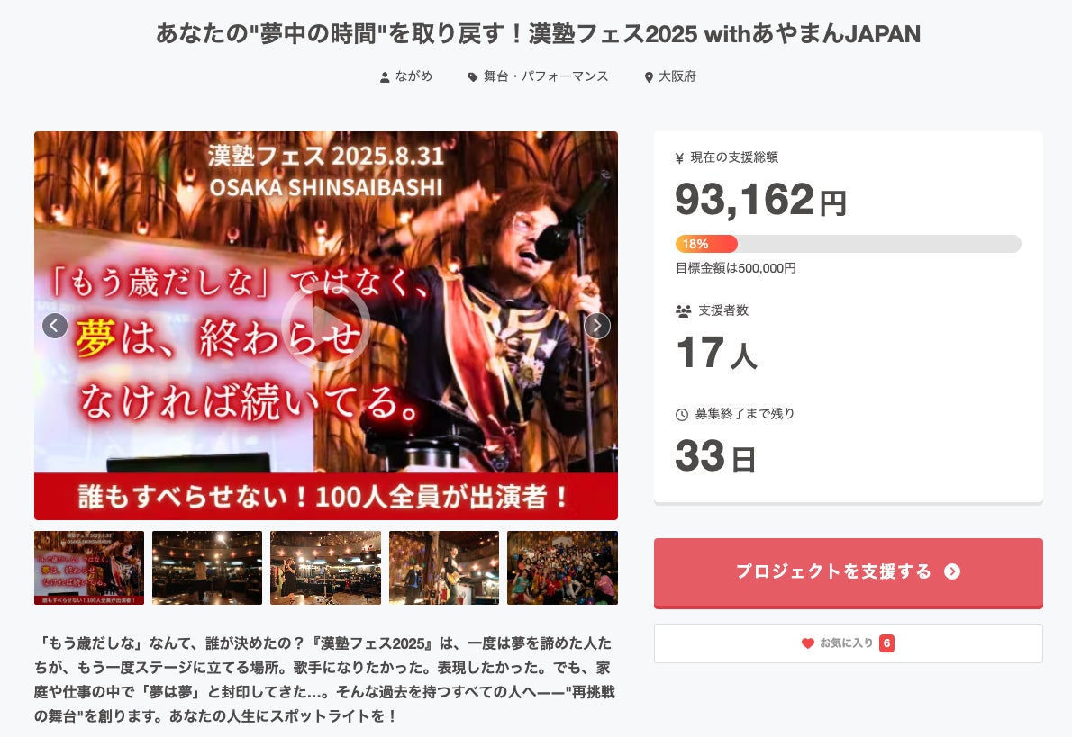 17名のあなたから93,162円のご支援をいただいております!応援いただきありがとうございます!