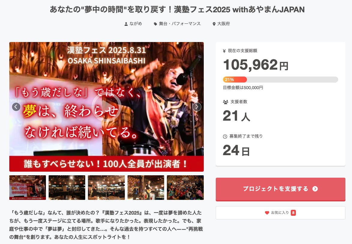 漢塾フェス2025のクラウドファンディングスタートから21日が経過!
