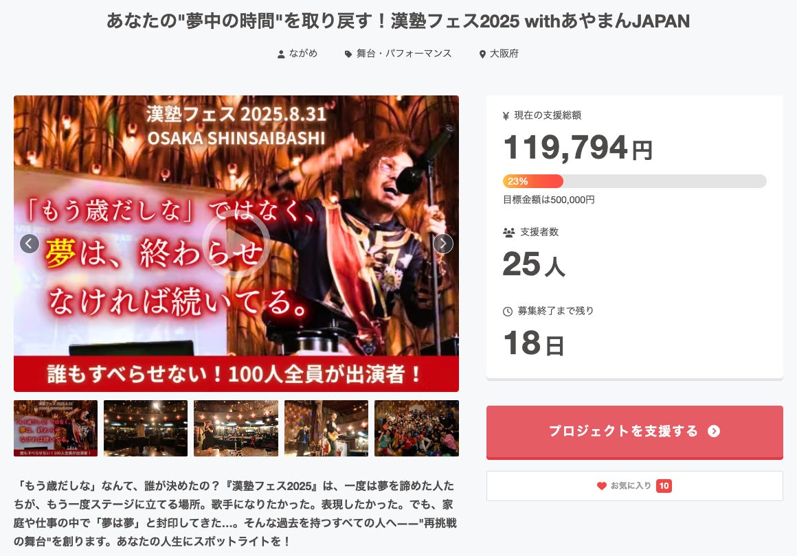 漢塾フェス2025のクラウドファンディングスタートから27日が経過!