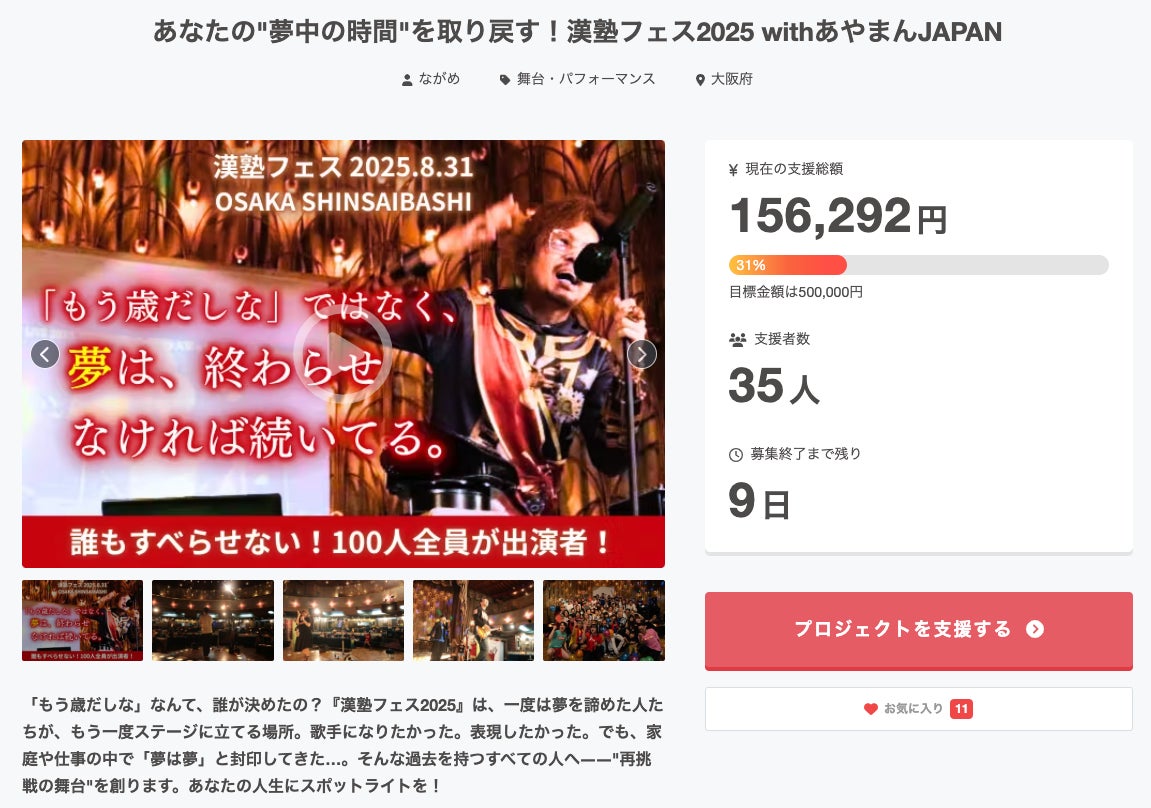 漢塾フェス2025のクラウドファンディング、残り9日!