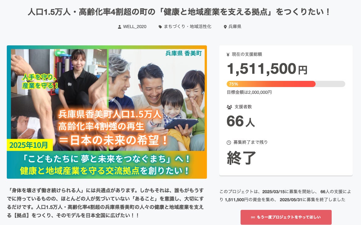 田淵さんが挑戦した香美町再生・地域活性化のためのクラウドファンディング