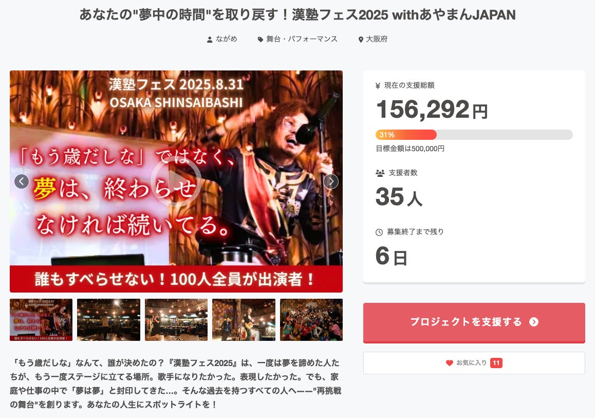 漢塾フェス2025のクラウドファンディング、残り6日!