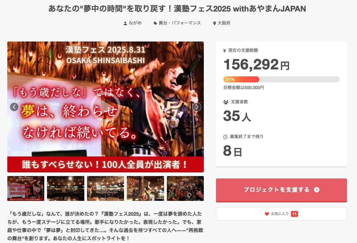 漢塾フェス2025のクラウドファンディング、残り8日!