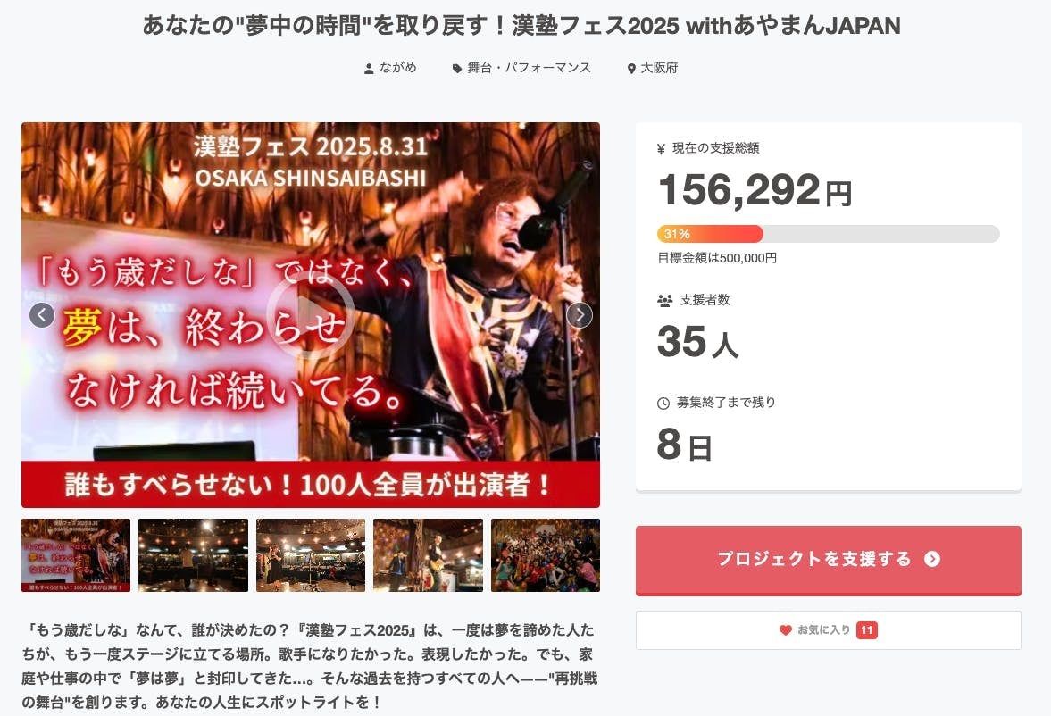 漢塾フェス2025のクラウドファンディング、残り7日!