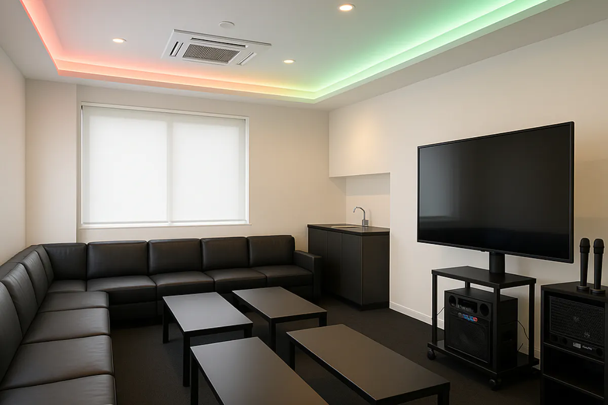 これまで多くのお客様を迎えてきた中で、「気心知れた仲間と、誰にも気兼ねなく楽しめる場所が欲しい」という声を多くいただきました。スタッフのいない完全プライベート空間で、カラオケを楽しみながら、始まりから終わりまで自分たちのペースで過ごせる。そんな“自分たちだけの時間”を叶える場所を作りました。他にも、会議やセミナーなどにも使用できるようシンプルな内装設計しておりますので、ビジネス利用でもお使いいただけます。ご自身のビジネスを拡大する場としても活用していらだけたらうえ