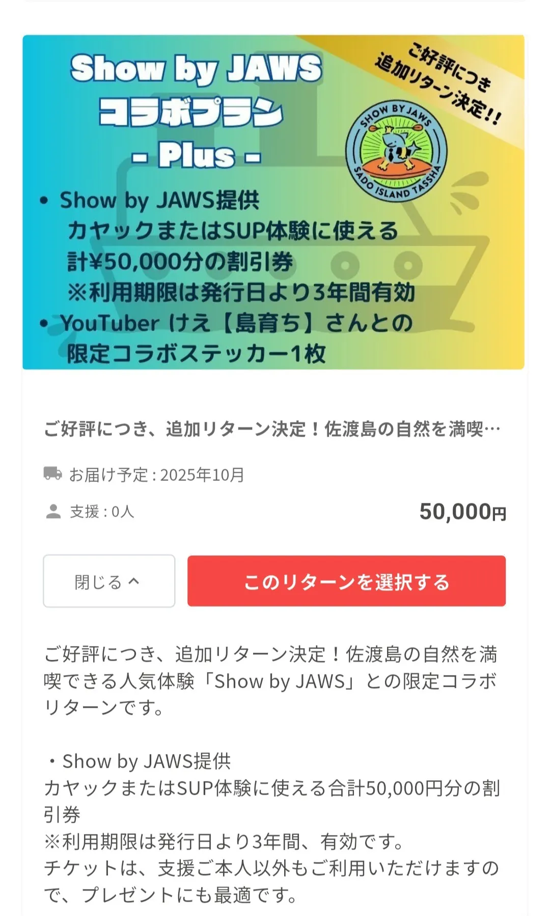 #HarborbaseSHARK #佐渡 #クラファン #ShowbyJAWS #けえ島育ち #コラボ #リターン追加