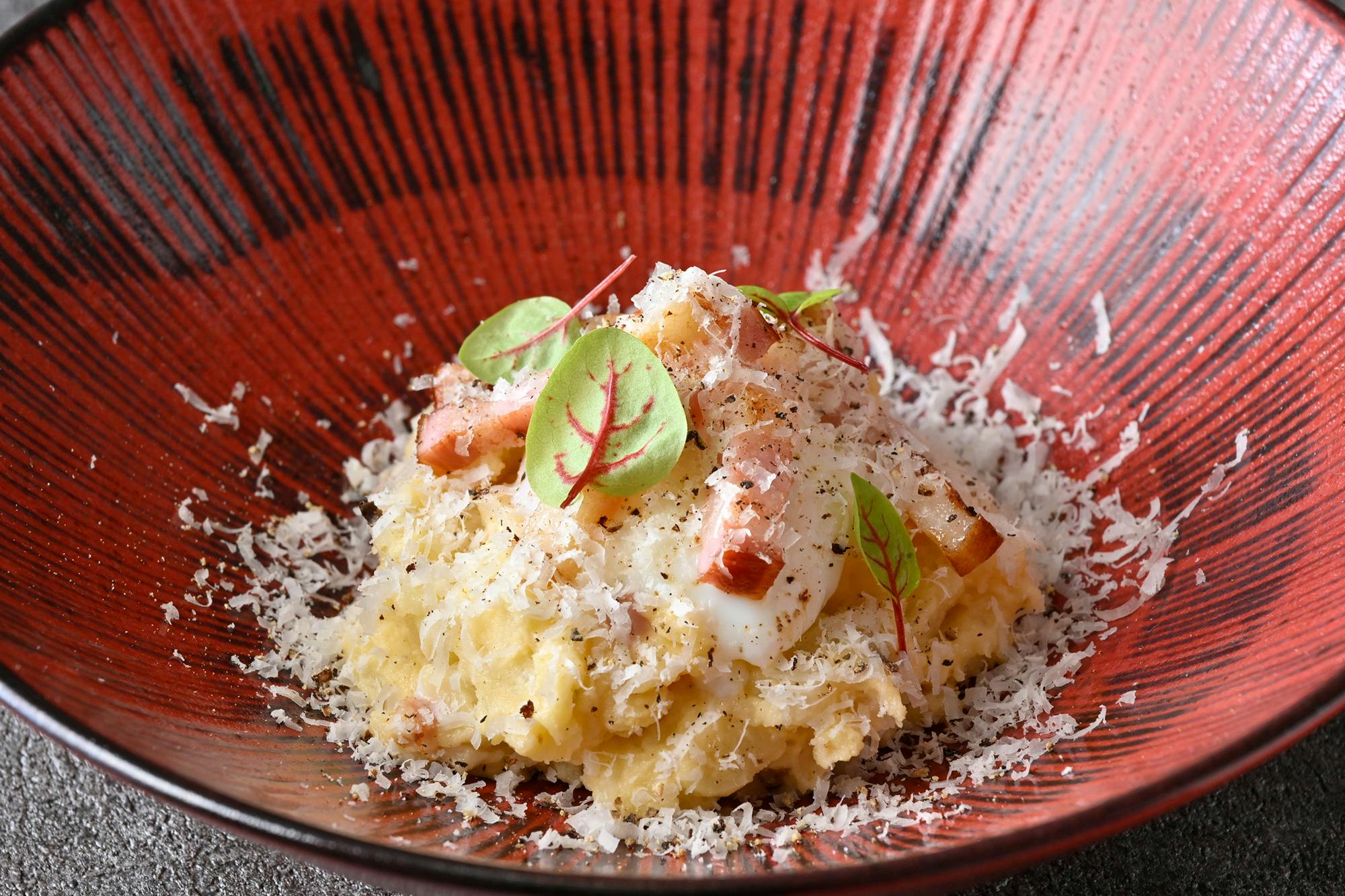 和洋折衷の創作和食は、盛り付け、香り、食感のコントラストを意識。日本酒との一体感を感じられる芸術的な料理をご提供します。