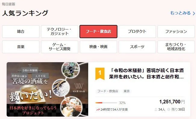 皆さまのご支援のおかげで、昨日スタートした当店のプロジェクトがクラウドファンディングサイト内「フード・飲食店部門 人気ランキング1位」を獲得いたしました。