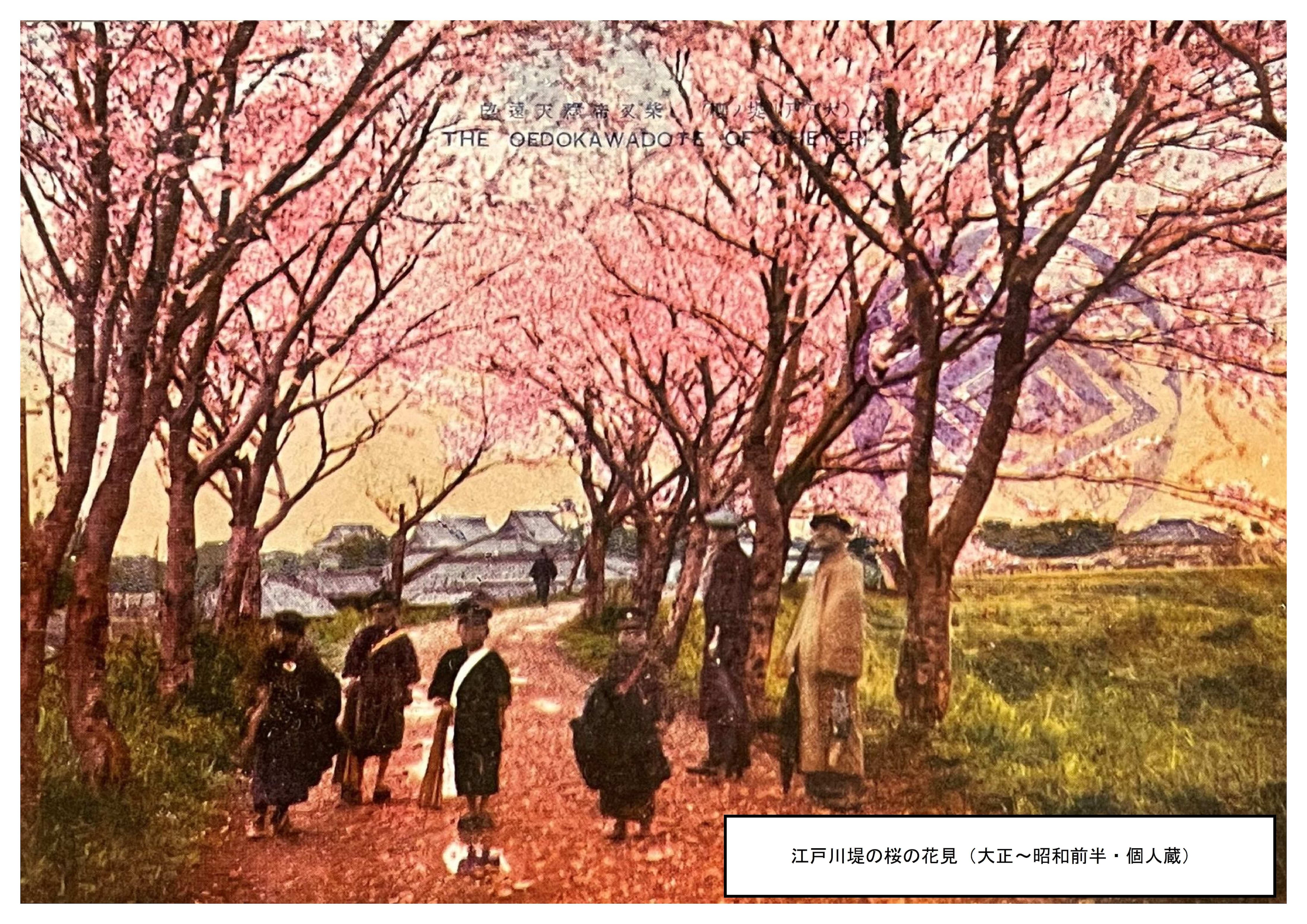 日本各地を旅した寅さんは、どこにいても故郷を懐かしく思い出し、ぶらりと柴又に帰ってきました。変わらないまちなみ、雄大な江戸川の風景、広い青空、そして、温かい人情が寅さんを「おかえり」と迎えました。そんな柴又はかつて東京東郊の桜の名所として知られ、明治37年に地元有志が植えた江戸川土手のおよそ2千本の桜は見事な並木となっていました。河川改修のため惜しまれながら姿を消した桜ですが、その記憶は柴又の誇りとして今でも語り継がれています。