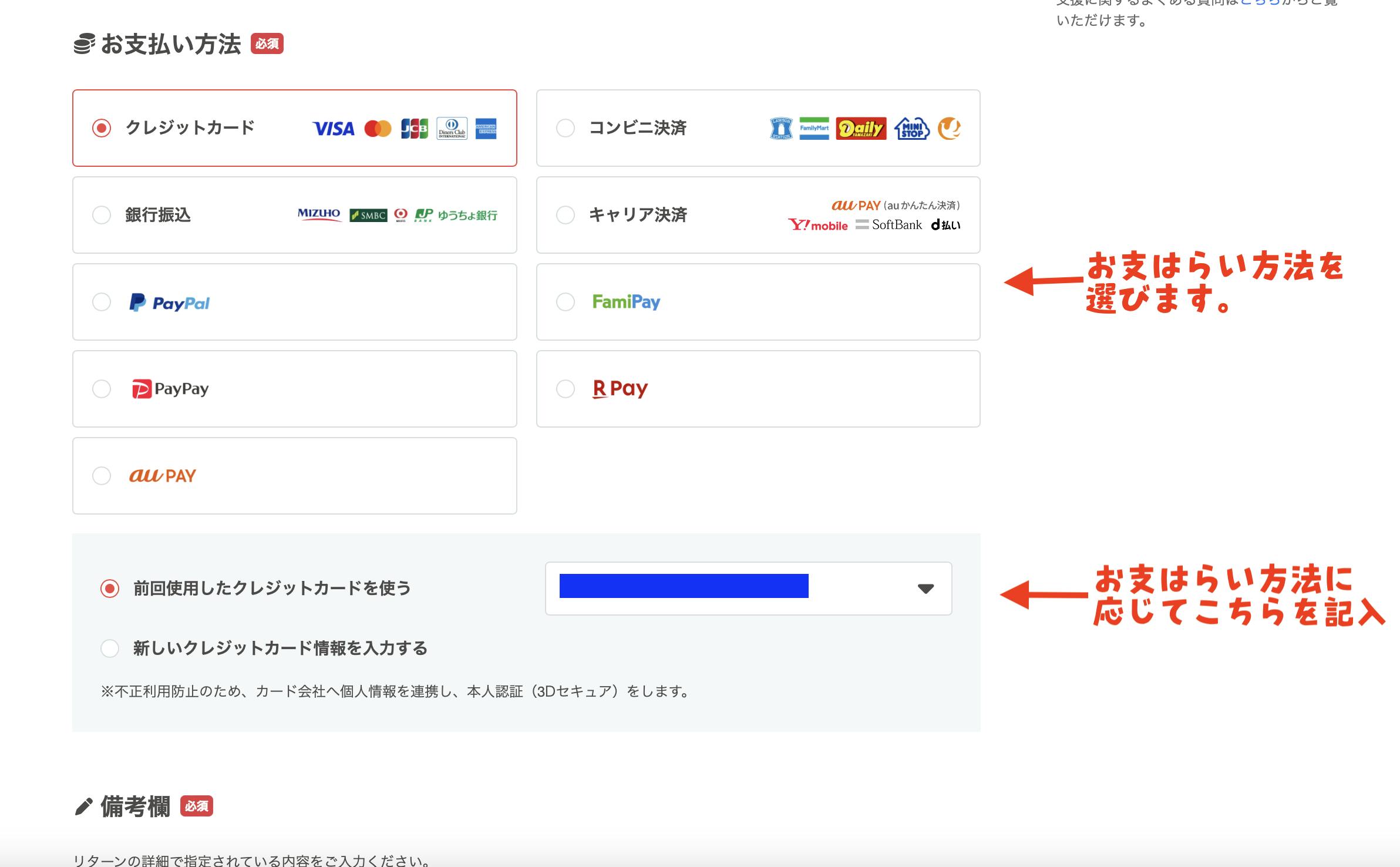 ⑤お支払い方法を選びます。必要事項を記入してください。