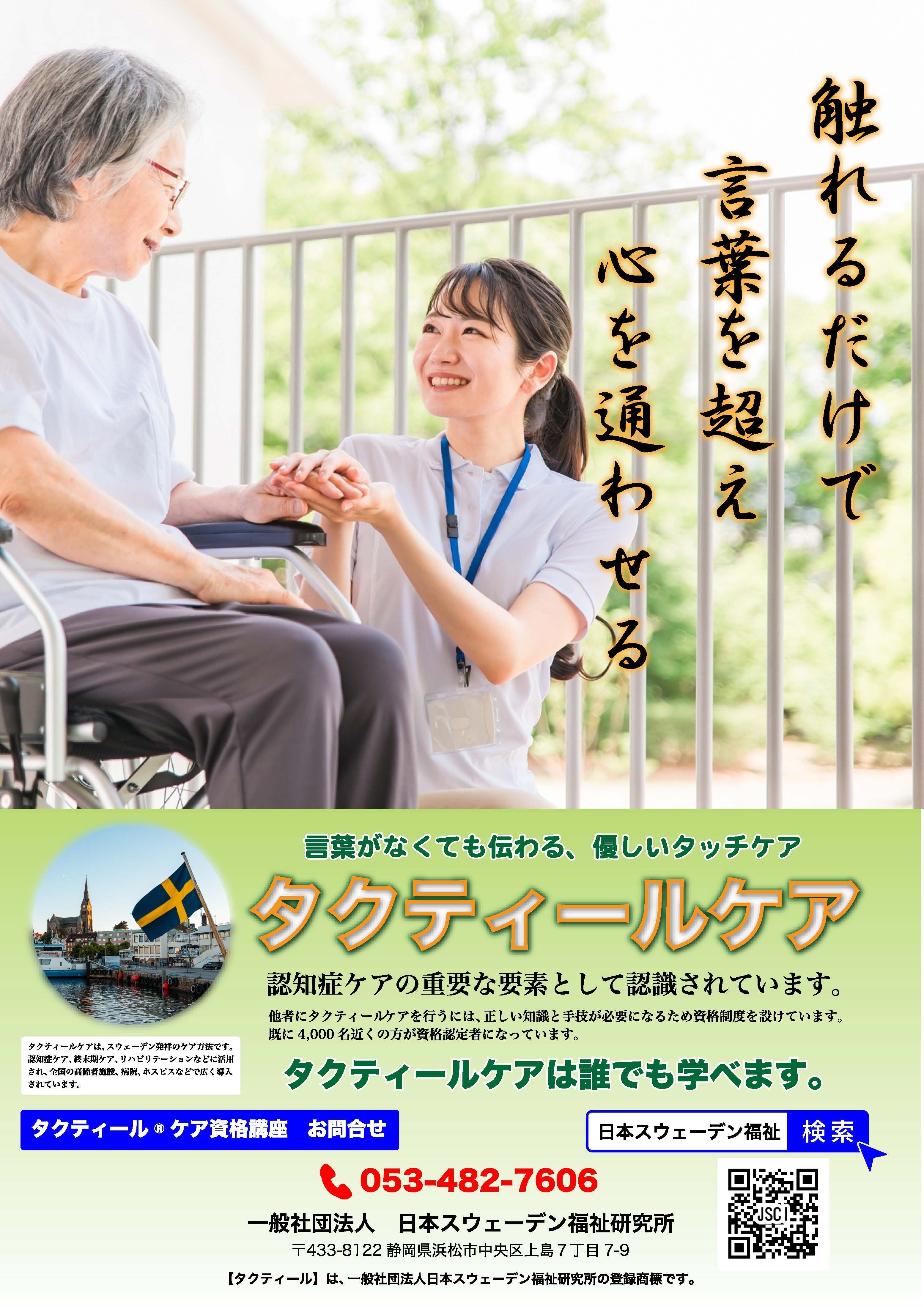 2日間の集中セミナーを通じて、タクティールケアの基本を学び、実践的なスキルを身につけることができます。このセミナーでは、専門の講師が指導し、実際に手を動かしながら学ぶスタイルなので、即座に役立つ知識と技術を習得できます。自分のスキルを磨くことはもちろん、他の参加者との交流を通じて、共に学び合う素晴らしい機会です。あなたのやる気が社会を変えるこの機会に、あなたの力を貸してください。一緒に学び、共に成⾧し、新たな仲間とともに、未来に向かって挑戦していきましょう。タクティールで手に入れたスキルが、認知症対策における強力な武器となるでしょう。